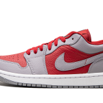 The Women’s Air Jordan 1 Low Split “Gym Red/Cement Grey” is a women’s-exclusive colorway of the classic sneaker with a split design. The “Gym Red/Cement Grey” modifies the always-popular Jordan 1 Low with a unique “split” appearance that features different color blocks on each side. The lateral side of the shoe features a Gym Red leather base with contrasting Cement Grey leather overlays and Swoosh branding. The medial side switches the color block, to a black leather base with red leather overlays and Swoosh branding. The split color blocking continues on both the tongue and tongue tag.