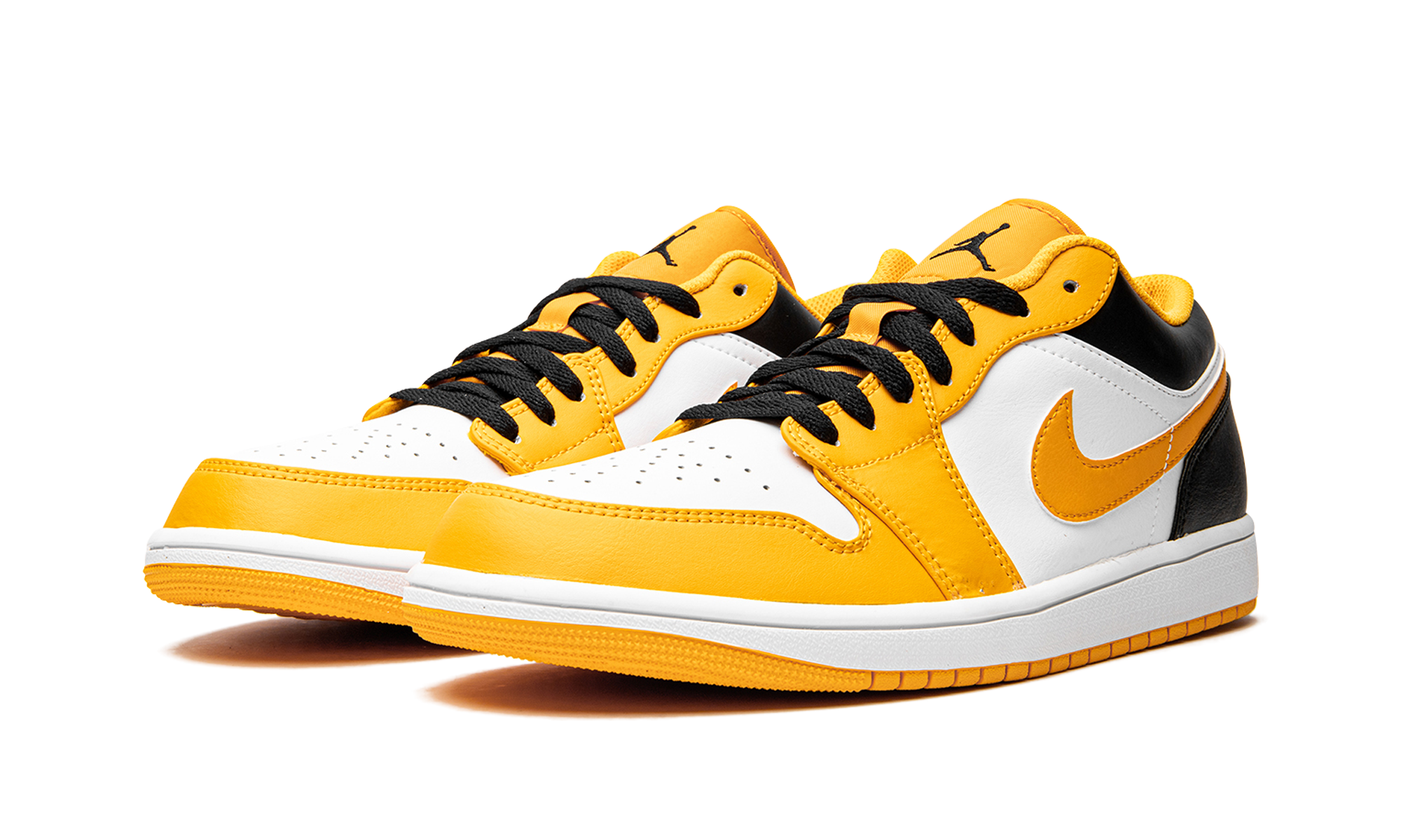The Air Jordan 1 Low “Taxi” is a black, white, and yellow colorway of Michael Jordan’s first signature shoe in its low-top silhouette. The “Taxi” was released in September 2022 and attracts attention with a striking combination of yellow and black accents throughout its design. The perforated toe and mid-panel feature a white leather construction. Taxi-colored leather appears on the toe cap, forefoot, eyelets, and Swoosh. A yellow “Wings” logo dots the heel and a black Jumpman is embroidered on the yellow nylon tongue. Black laces, a white midsole, and yellow rubber outsole put the finishing touches on this eye-catching Air Jordan 1 Low. Release date: September 17, 2022