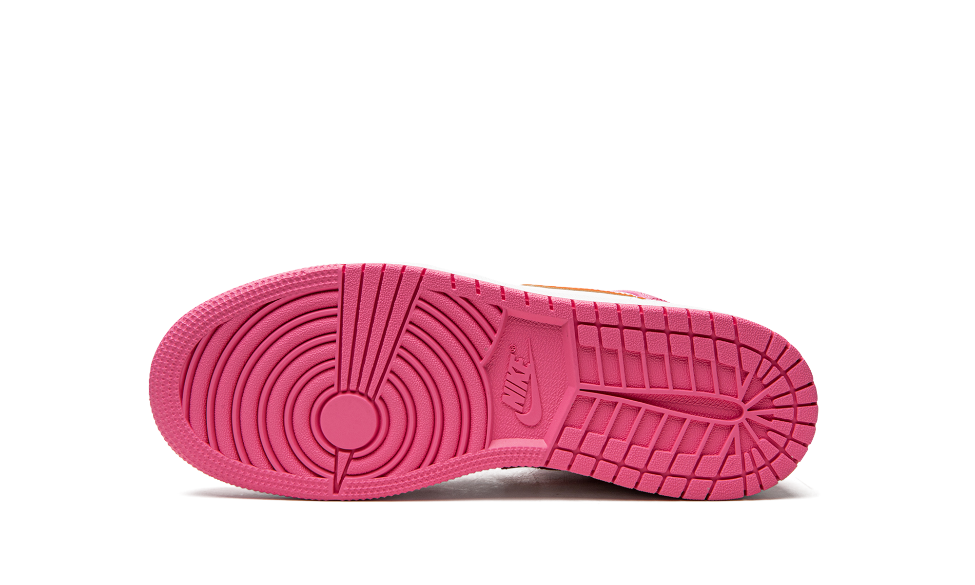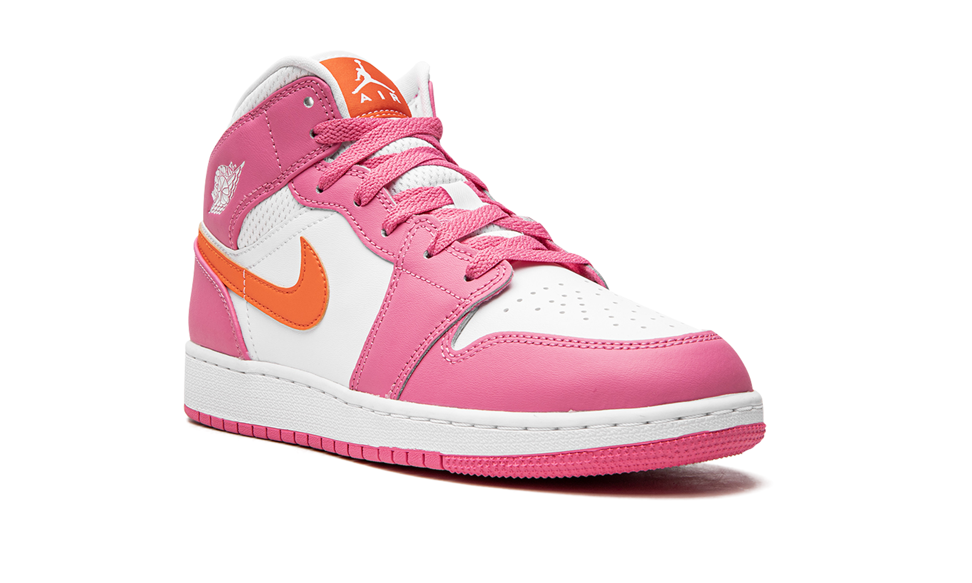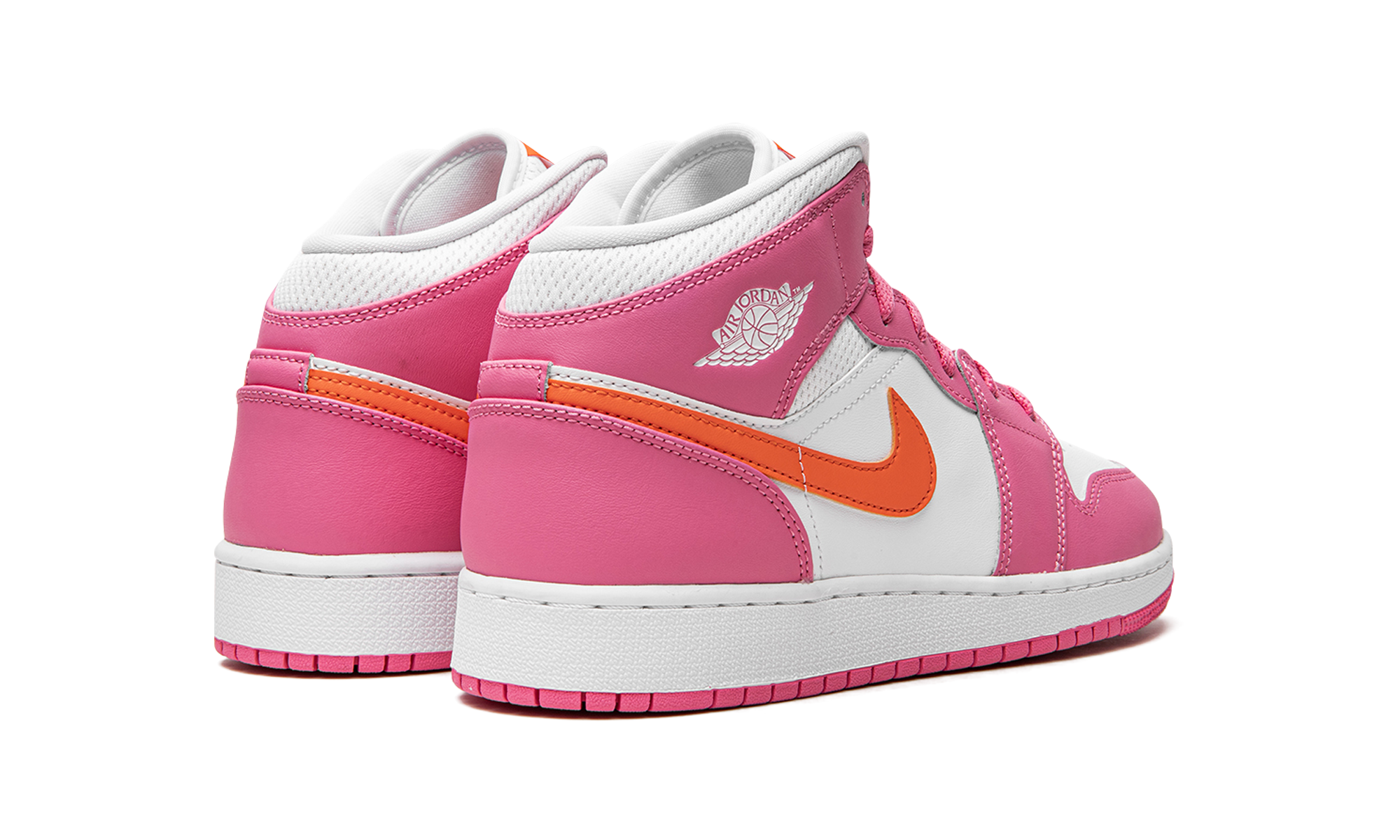The Air Jordan 1 Mid GS “Pinksicle” is a fun and colorful look for popular silhouette for kids. The eye-catching design features a white leather base with mesh around the ankle, which is all layered with a bright shade of pink that Nike is dubbing Pinksicle across the rest of the upper. Orange accents also come into play for the side Swooshes and Jumpman tongue tag.