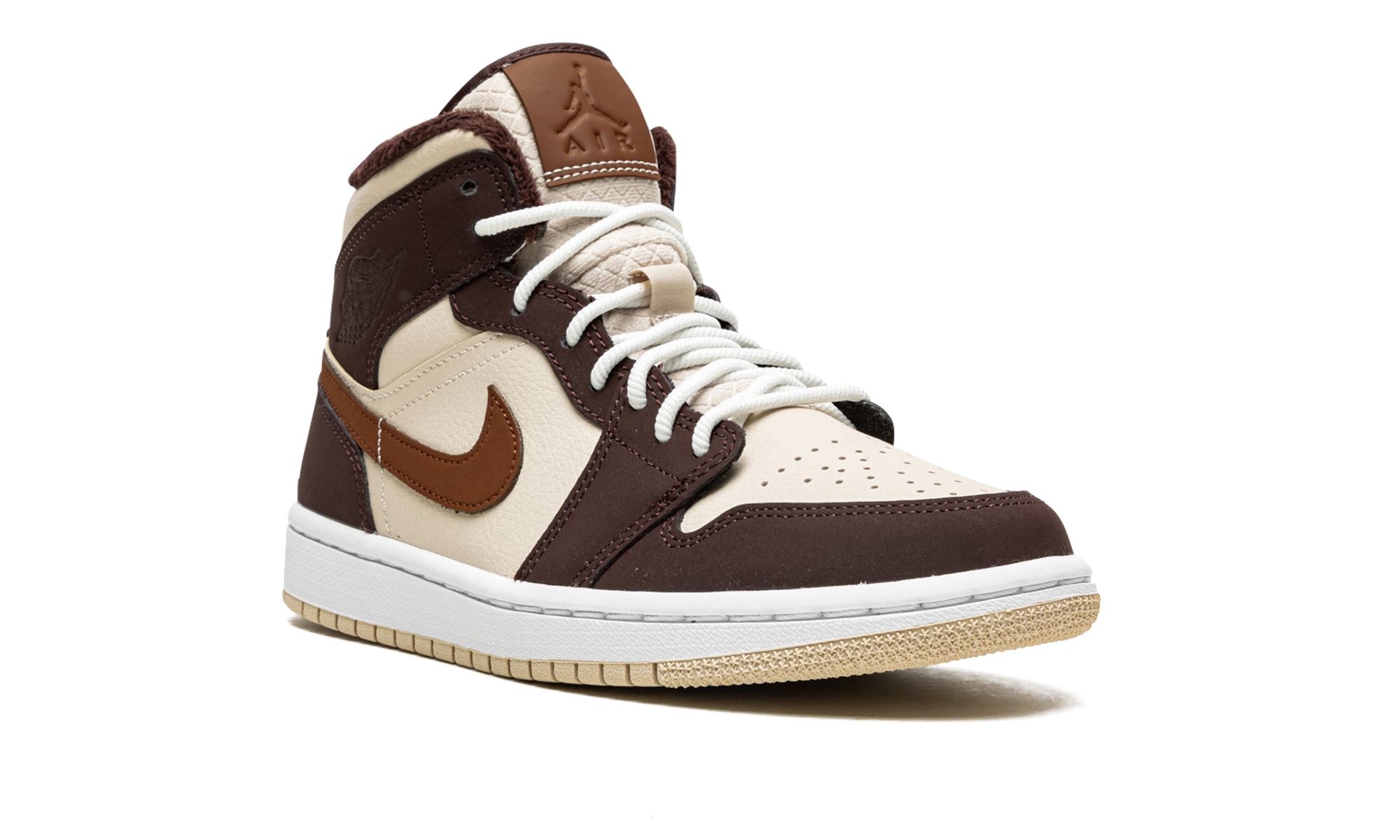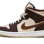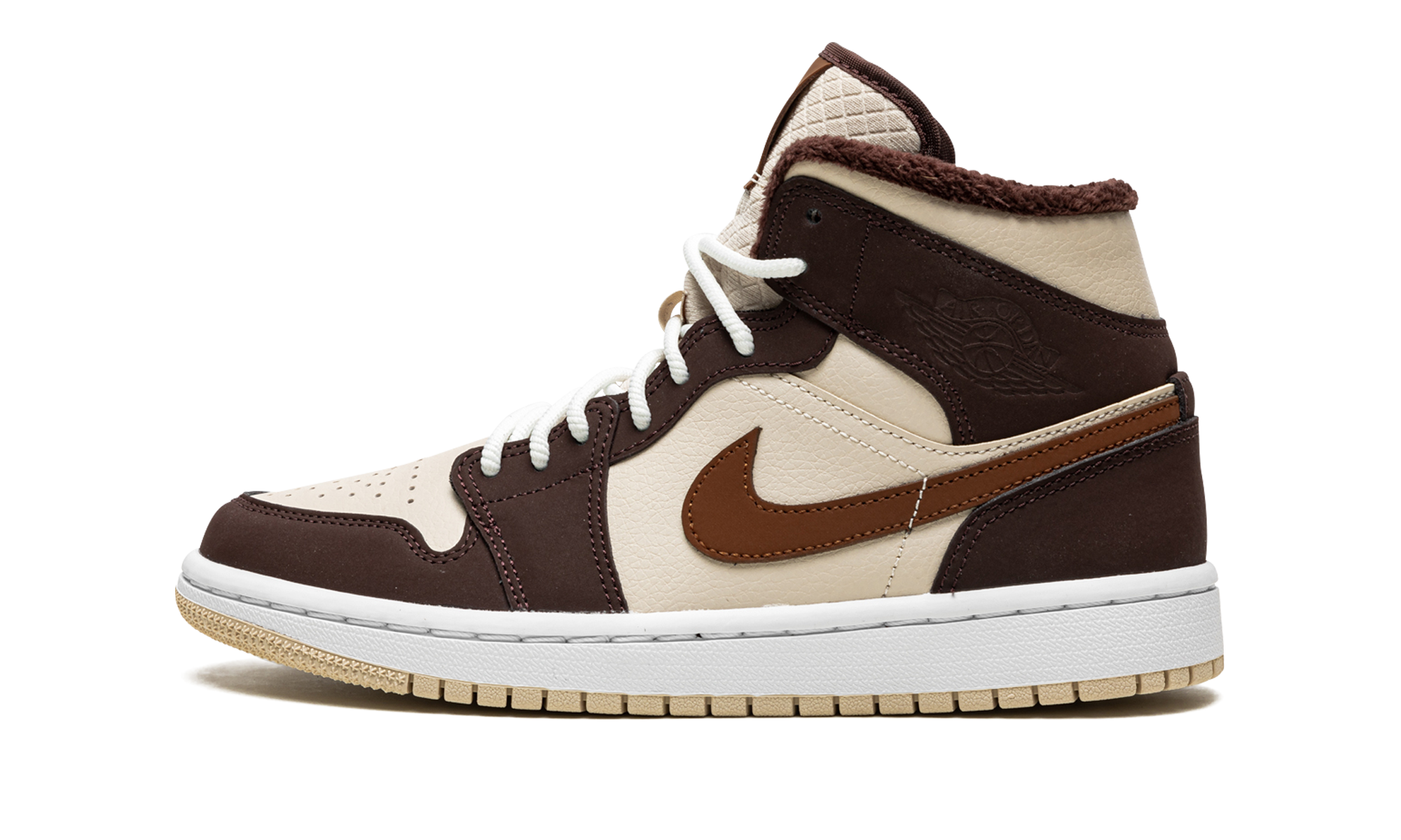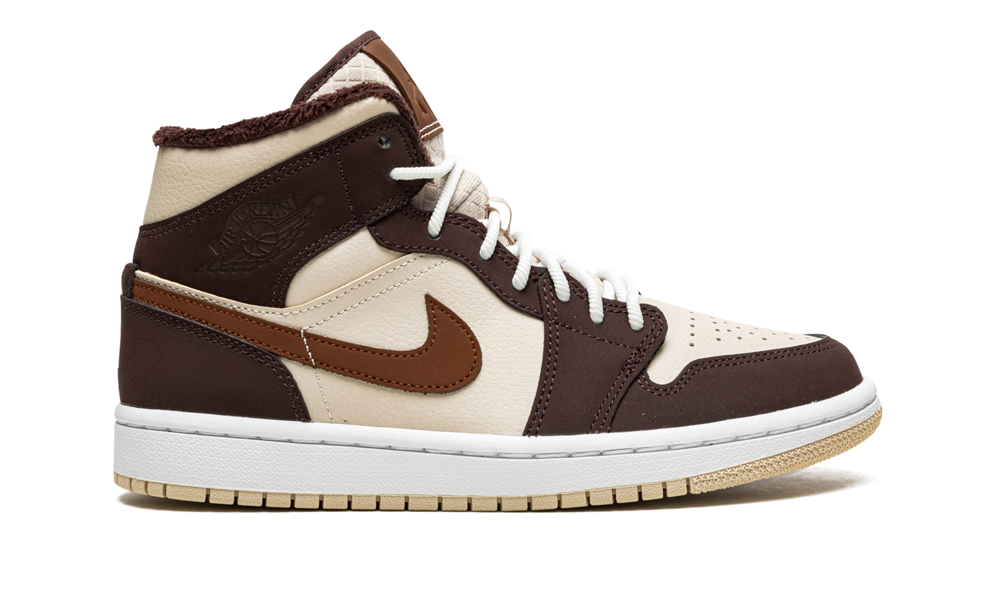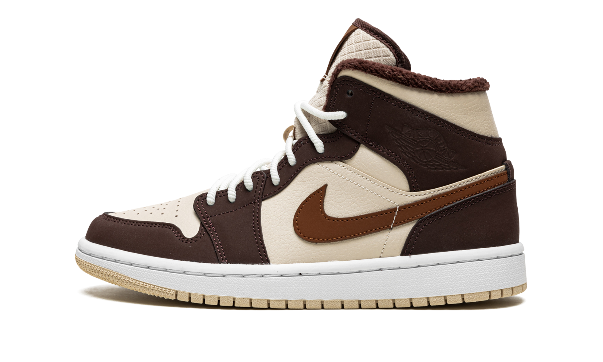 The Women’s Air Jordan 1 Mid “Brown Basalt Fleece” is a women’s-exclusive colorway of the lifestyle shoe with cold weather-inspired design elements. Featuring a fleece interior lining, the “Brown Basalt Fleece” Jordan 1 Mid is a standout option for cold weather. The shoe’s upper is constructed in cream-colored leather, with the material appearing on the perforated toe, mid-panel, and collar. Dark Brown durabuck overlays and a light brown Swoosh contrast the neutral-colored base. The “Brown Basalt Fleece” opts for a waffle-like tongue design and rope laces. A brown patch with debossed Jumpman and “Air” branding gives the shoe a decidedly upscale appearance. Release date: March 30, 2022