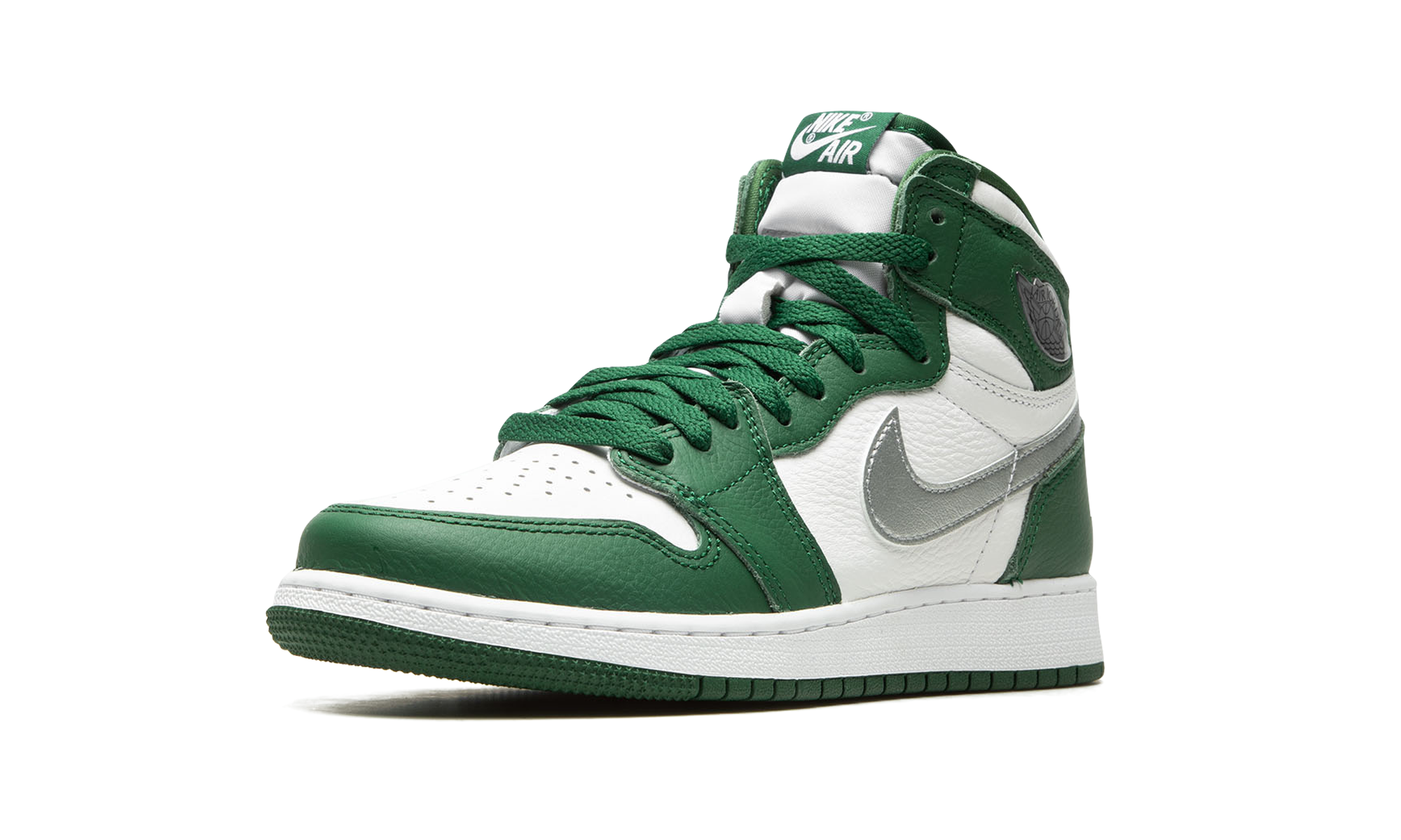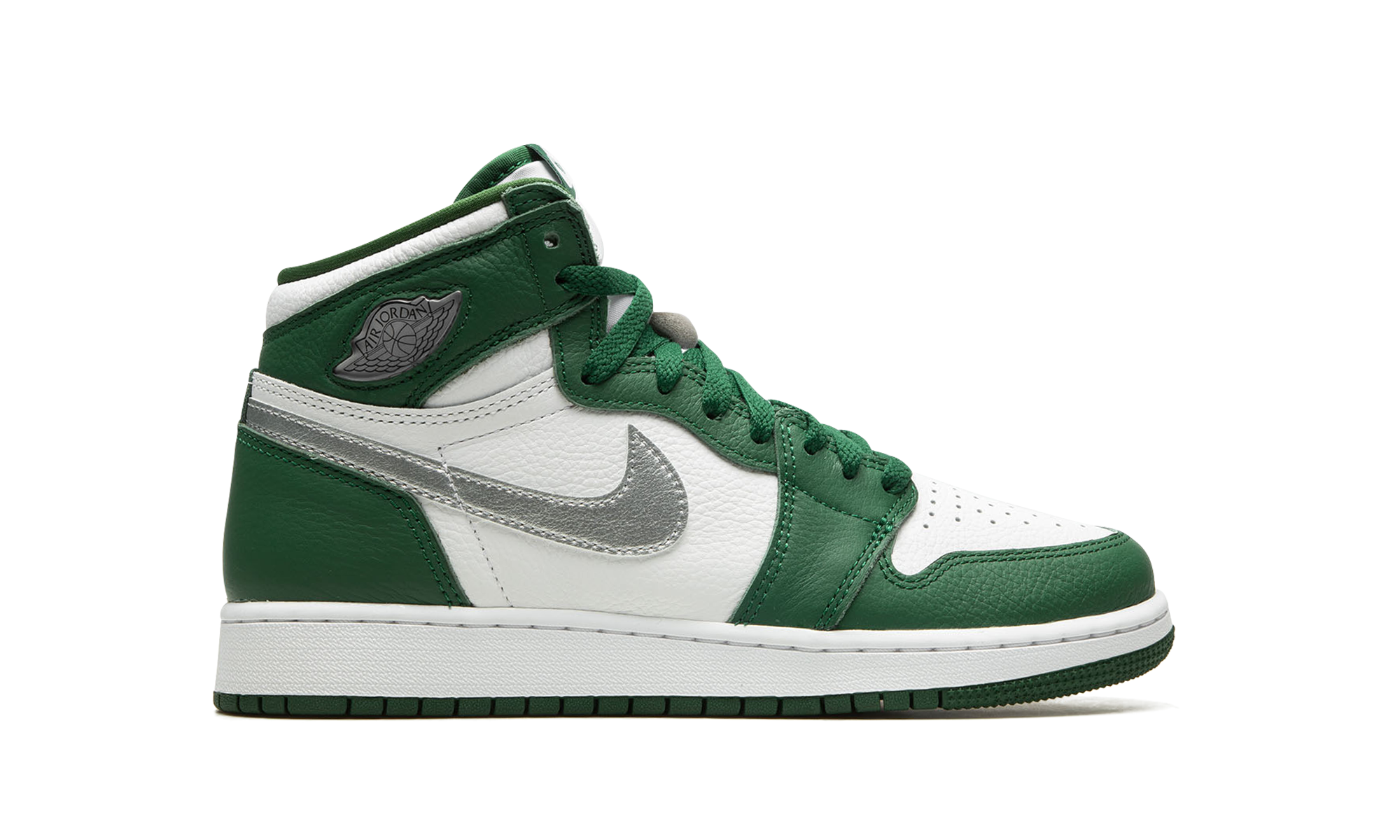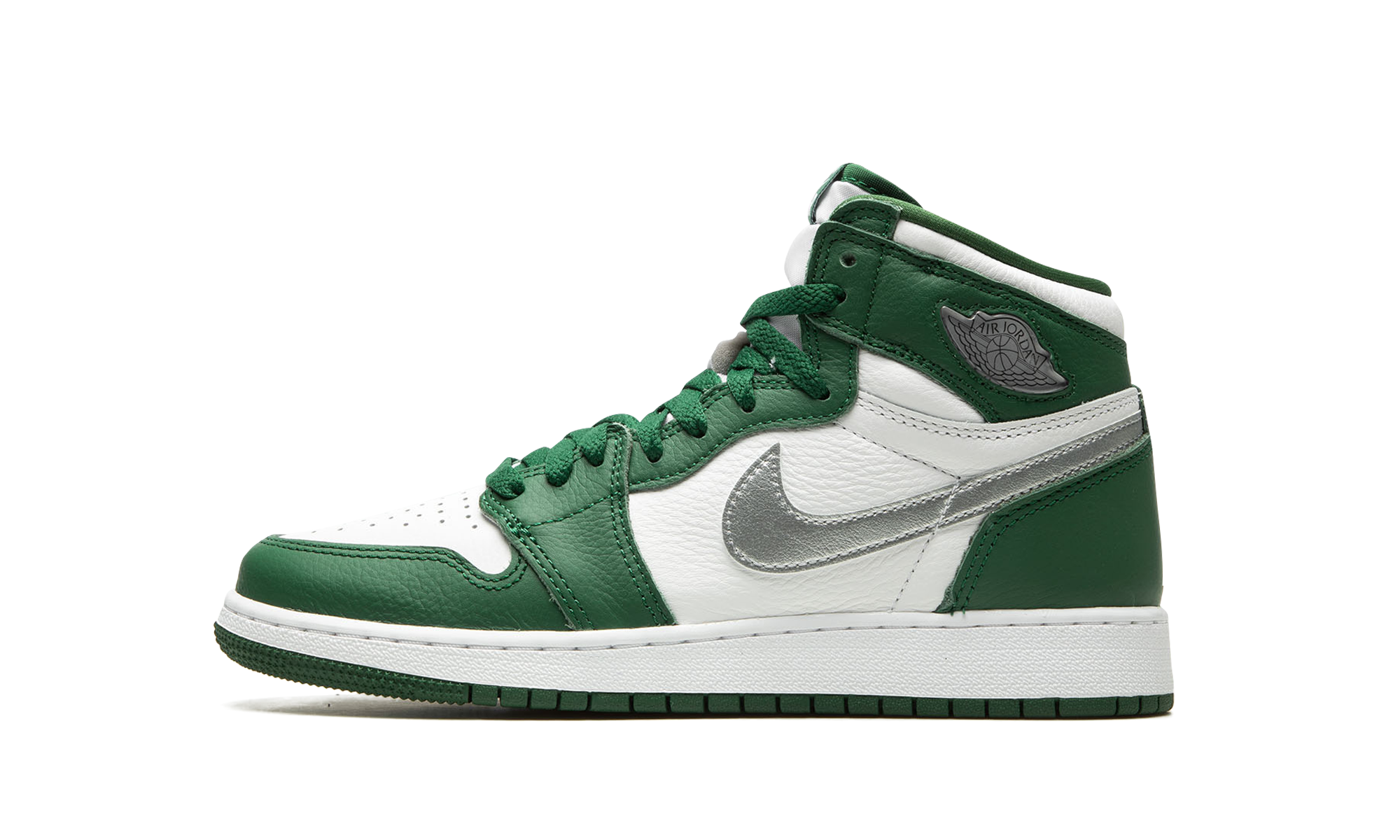 The Air Jordan 1 High OG GS “Gorge Green” is the youth sizing of Michael Jordan’s first signature shoe in a mostly two-tone, white and green colorway. This mid-top Jordan 1 features a white leather base and contrasting Gorge Green leather overlays. A Metallic Silver leather Swoosh logo appears on the sides and a silver “Wings” logo is found on the collar. Additional branding includes “Nike Air” and Swoosh detailing on the tongue tag. A white midsole and Gorge Green rubber outsole finish off the look. Release date: December 28, 2022