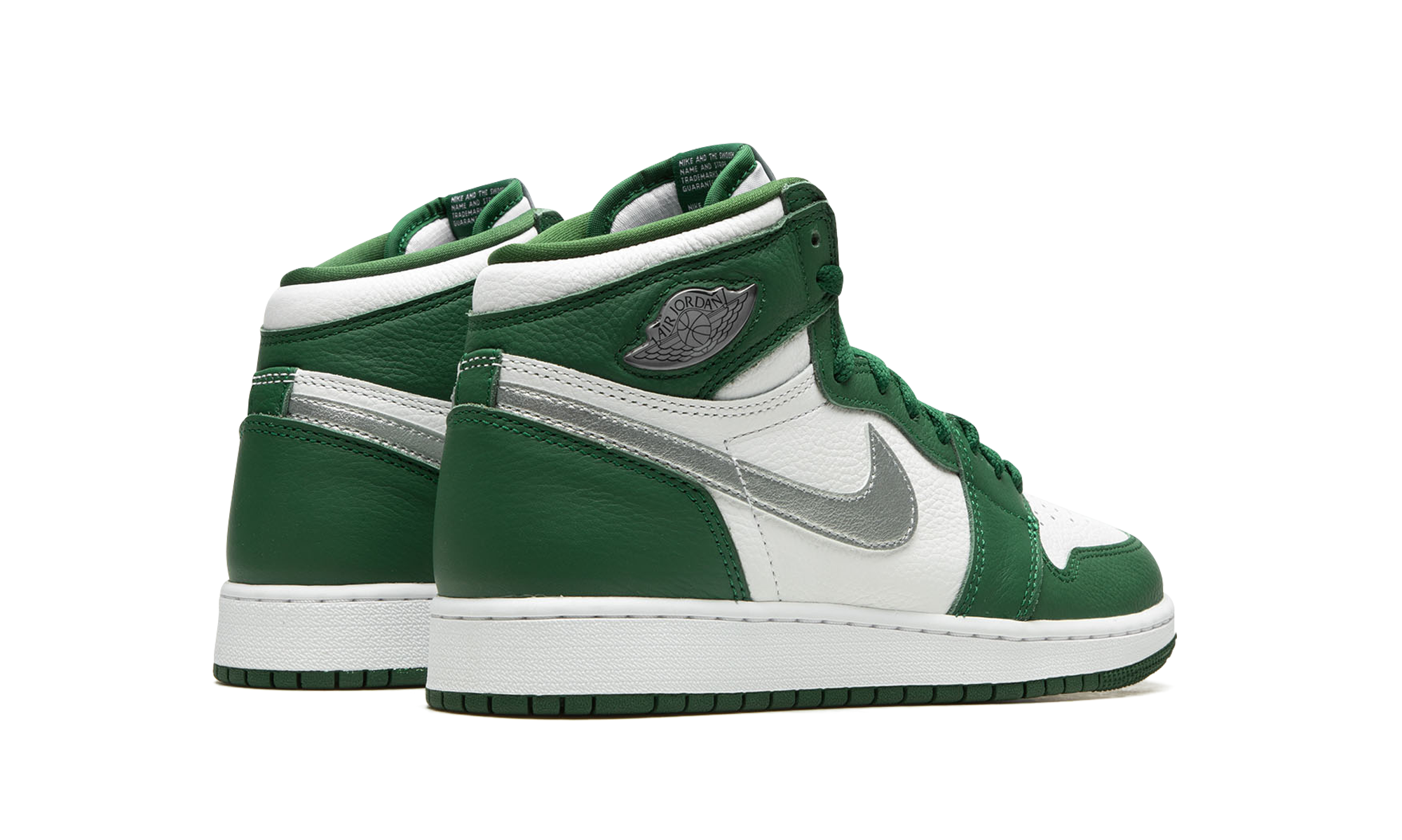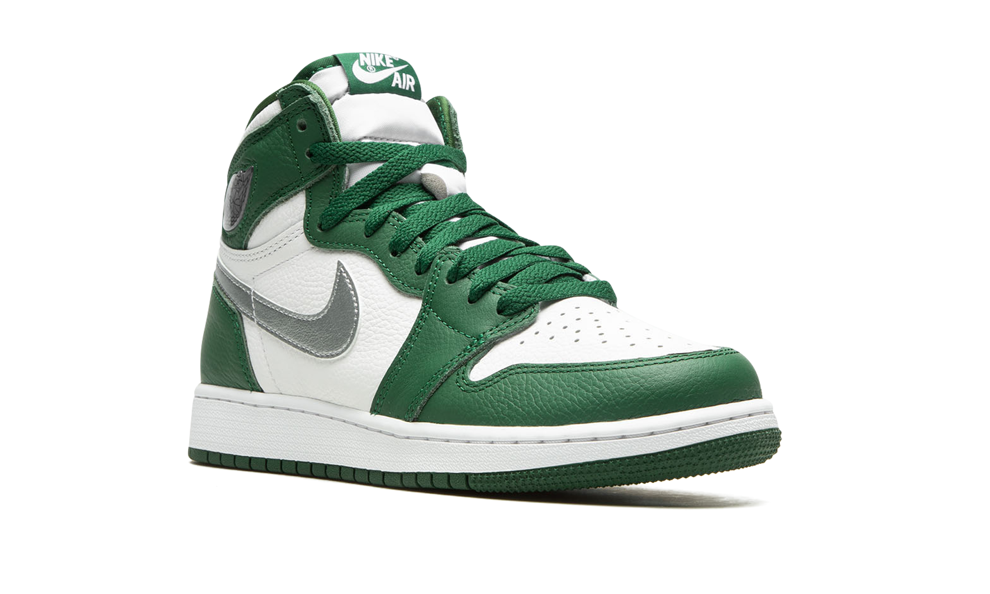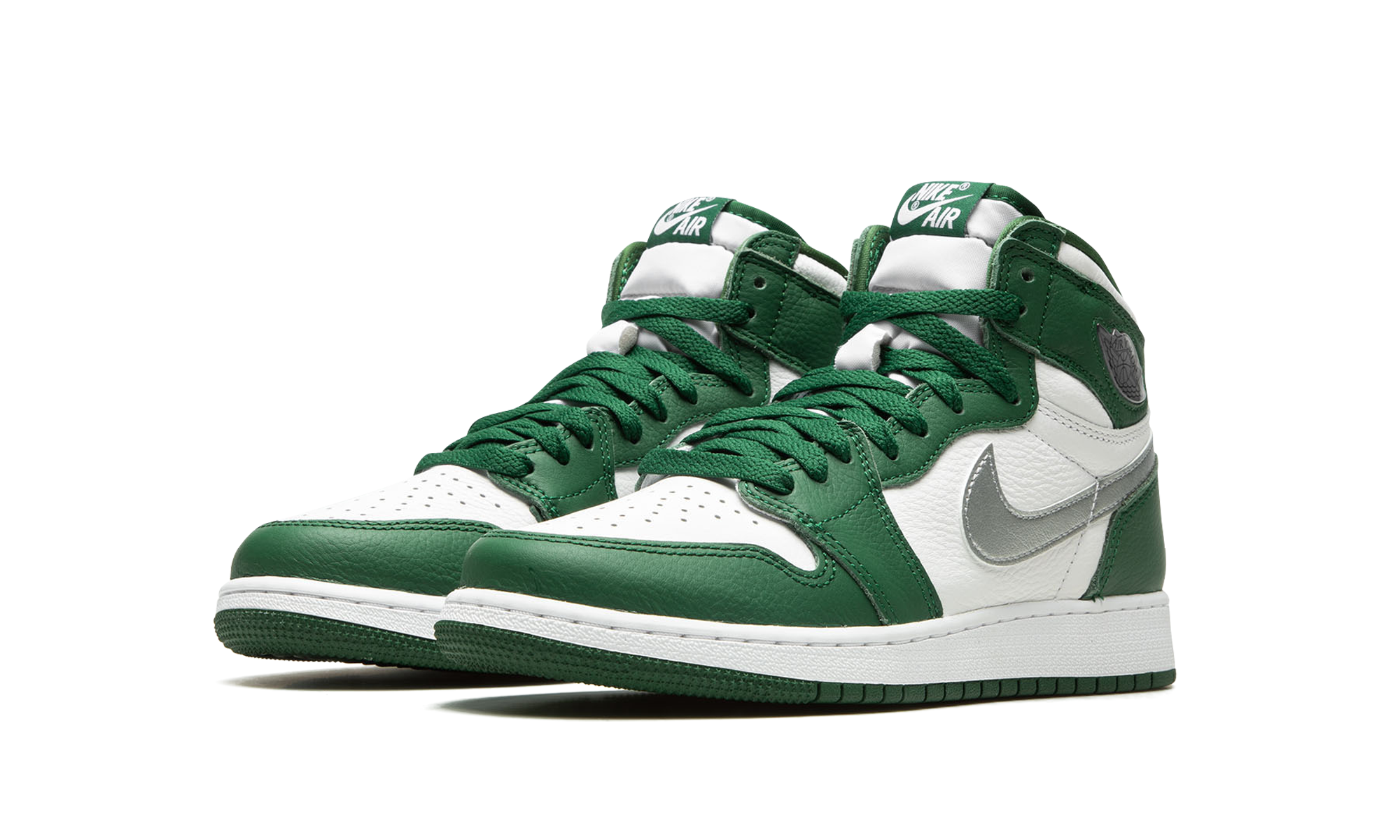 The Air Jordan 1 High OG GS “Gorge Green” is the youth sizing of Michael Jordan’s first signature shoe in a mostly two-tone, white and green colorway. This mid-top Jordan 1 features a white leather base and contrasting Gorge Green leather overlays. A Metallic Silver leather Swoosh logo appears on the sides and a silver “Wings” logo is found on the collar. Additional branding includes “Nike Air” and Swoosh detailing on the tongue tag. A white midsole and Gorge Green rubber outsole finish off the look. Release date: December 28, 2022