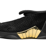 The children’s Air Jordan 15 “Doernbecher” was a part of Nike’s 2018 Doernbecher Freestyle Collection. The annual collection is designed by patients at the Doernbecher Children’s Hospital in Portland, Oregon. This Air Jordan 15 was designed by Donovan Dinneen. The clean look features a black snakeskin-textured suede upper with metallic gold accents on the midsole and heel. Special details on the tongue and insole of the Air Jordan 15 GS “Doernbecher” are inspired by Donovan’s favorite anime series.