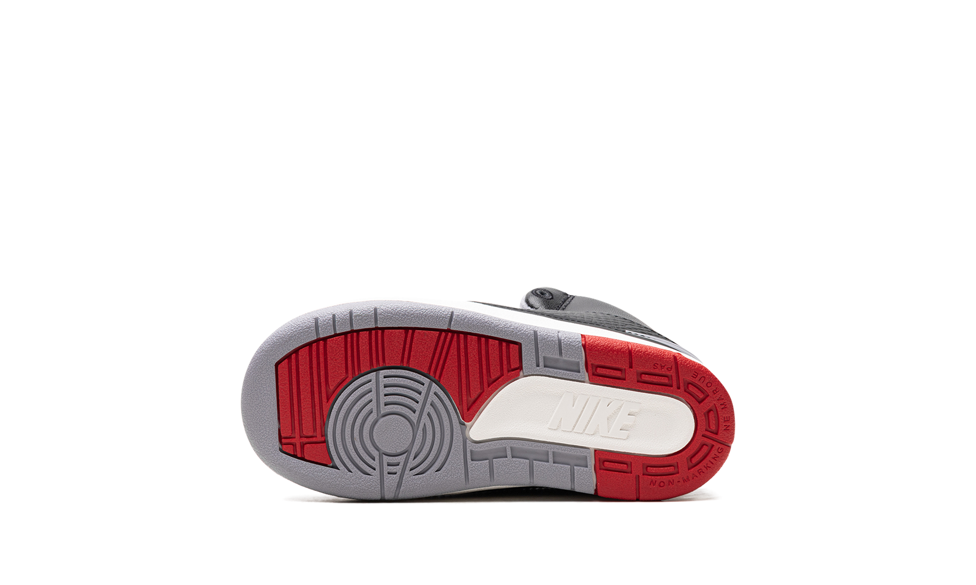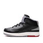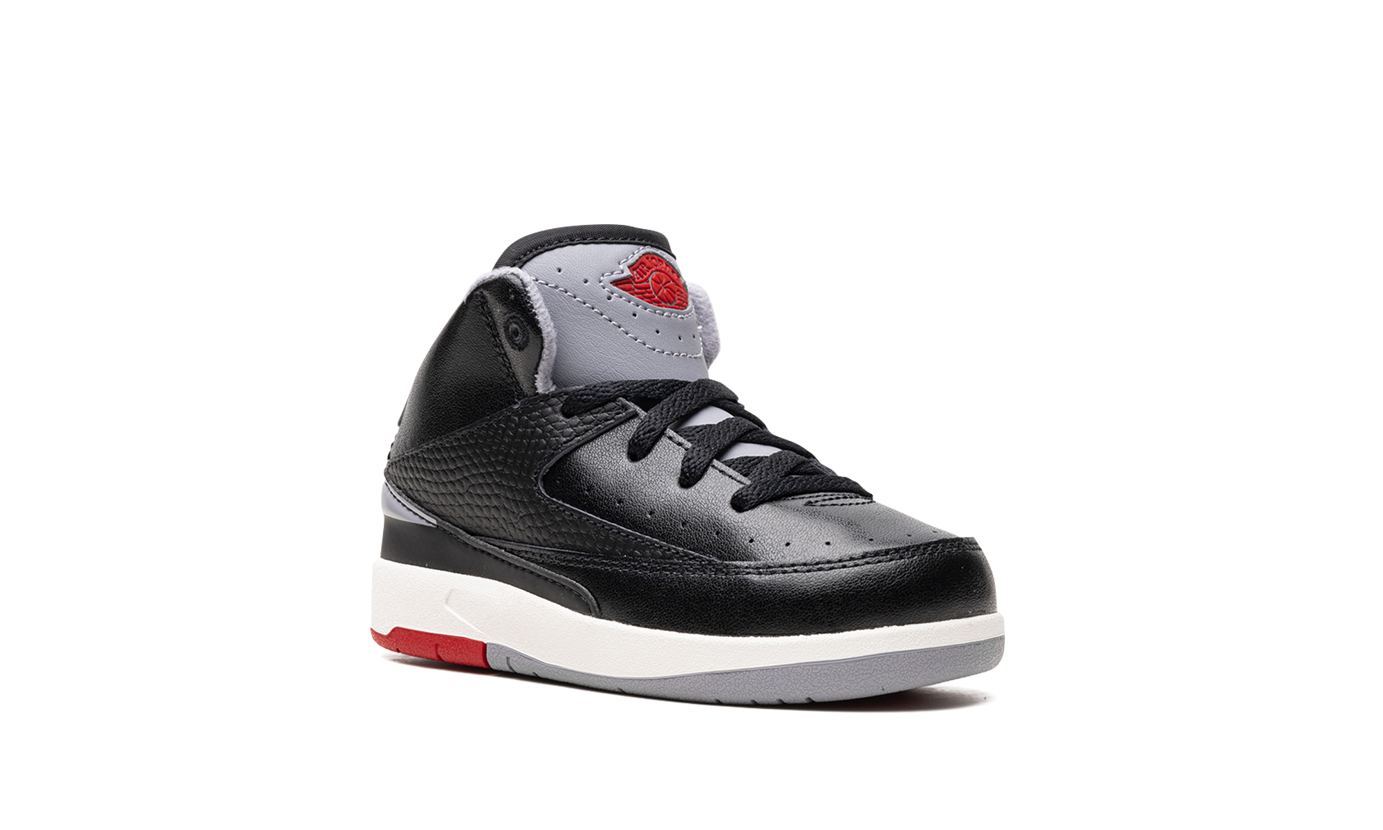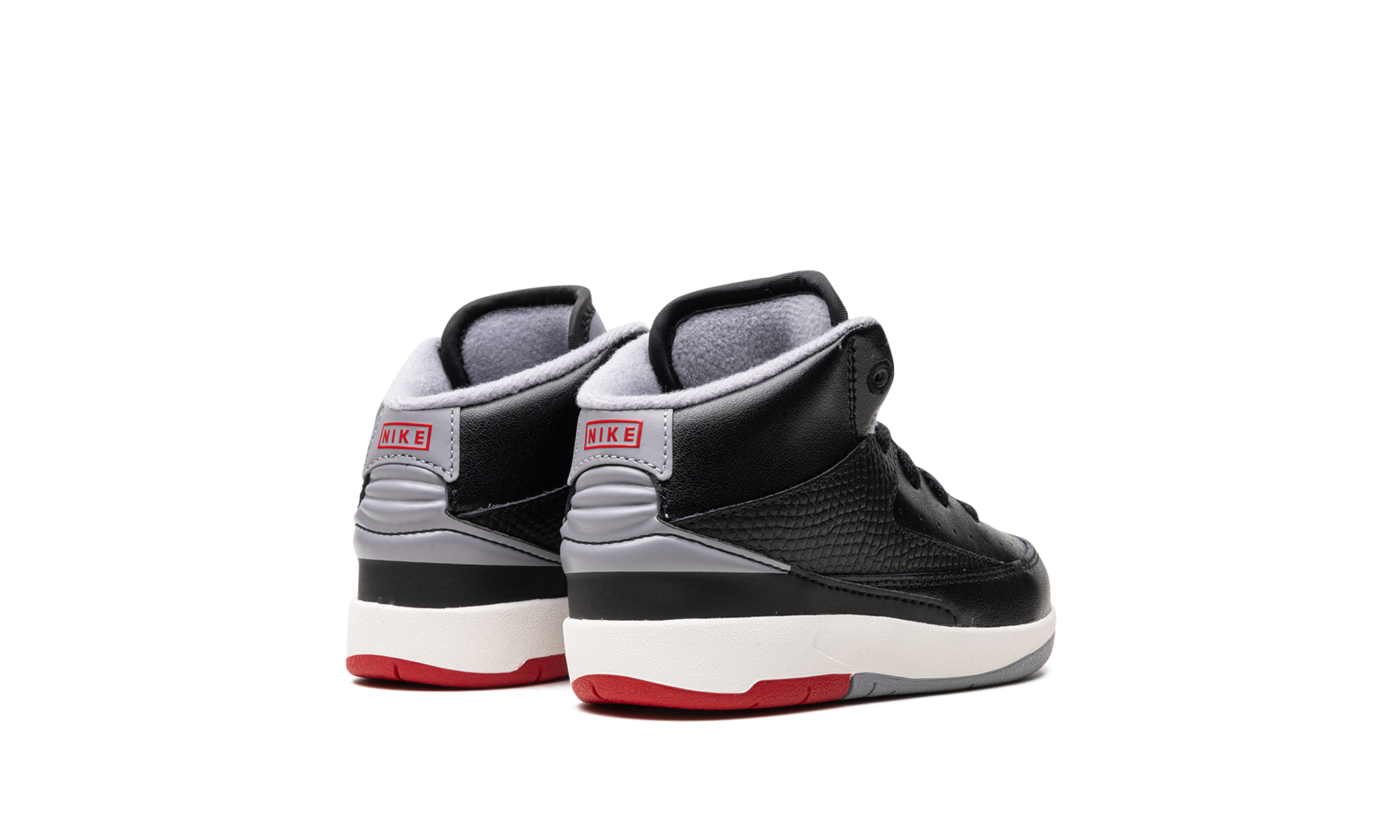 The Air Jordan 2 Retro TD “Black Cement” is the toddler sizing of Michael Jordan’s second signature shoe in a colorway inspired by a legendary Air Jordan style. The shoe in question is the Air Jordan 3 “Black Cement,” one of the most iconic sneakers of all time. The “Black Cement” Jordan 2 mimics the Jordan 3 of the same nickname’s look with black, grey, and red detailing. The design has a black leather construction with contrasting Cement Grey accents on the heel, tongue, and inner lining. A red “Wings” logo appears on the tongue. Underfoot, the white midsole is paired with a red and grey rubber outsole. Release date: September 23, 2023