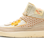 The Union x Air Jordan 2 SP “Rattan” is a collaboration between the Los Angeles based sneaker and clothing boutique and Jordan Brand on a lifestyle focused colorway of the retro basketball shoe. The Jordan 2 “Rattan” is yet another popular Air Jordan colorway co-designed by Union owner Chris Gibbs and Jordan Brand, a partnership that has worked together on numerous occasions over the years. Here, the “Rattan” features a completely new, lifestyle-oriented look complete with a tan textile upper and tonal suede overlays. The perforated detailing on the sides reveals an amber underlay. Additional amber or orange accenting comes into play on the plastic eyelets and on the “UN/LA” branding tag. A throwback flight tag featuring a faded “Wings” logo and other insignia is found on the lateral side of the collar. A fiery red Jumpman appears on the tongue tag. The shoe sits on a cream rubber sole. Release date: April 16, 2022