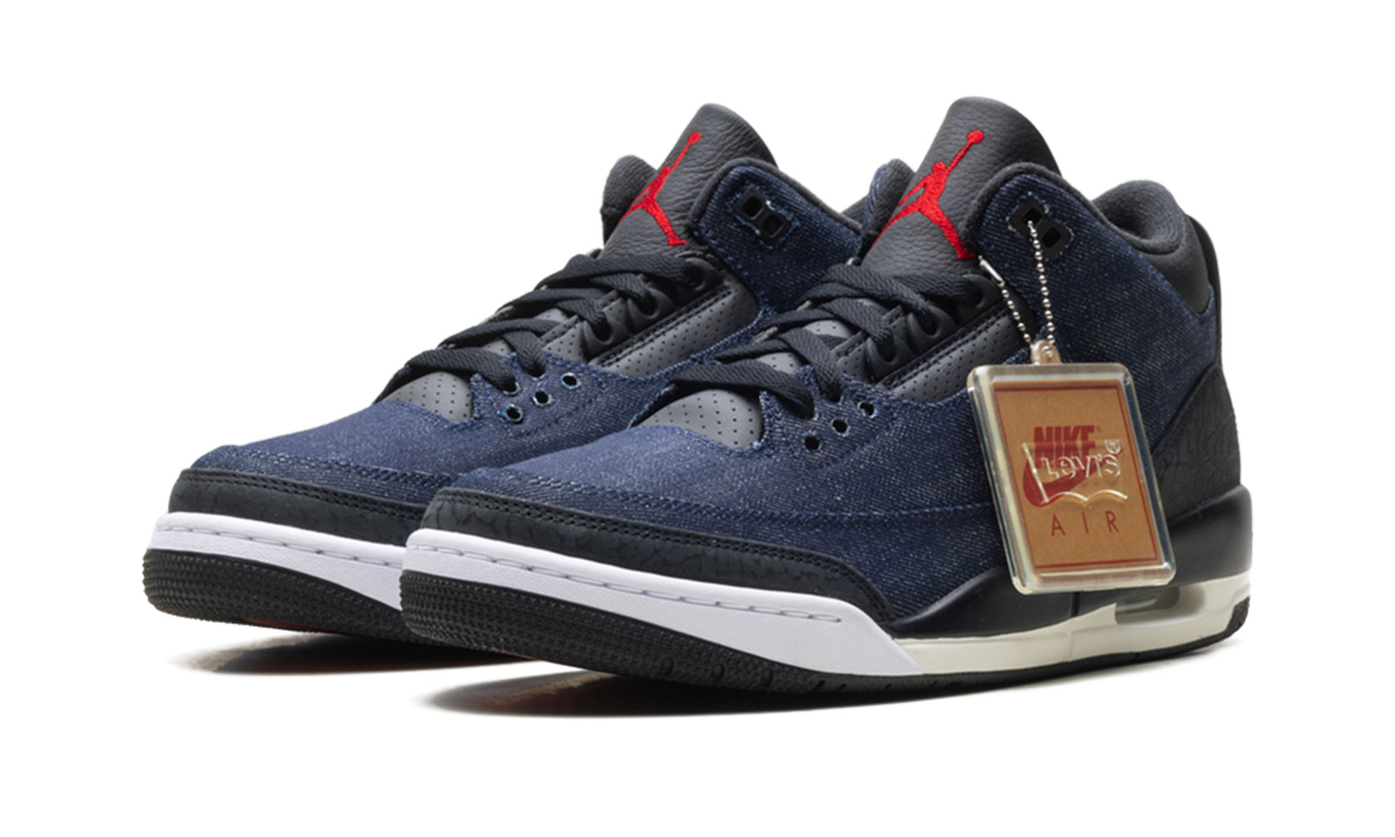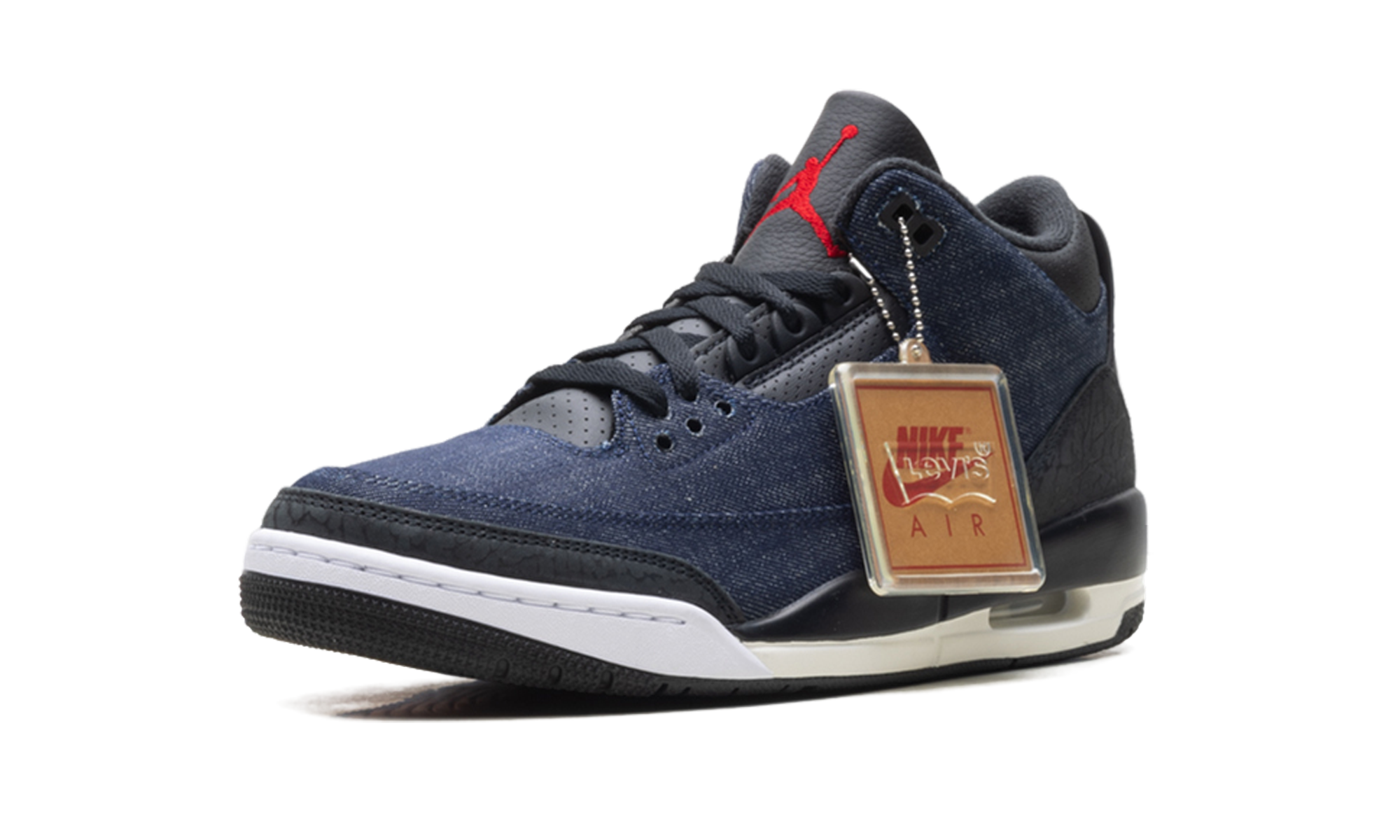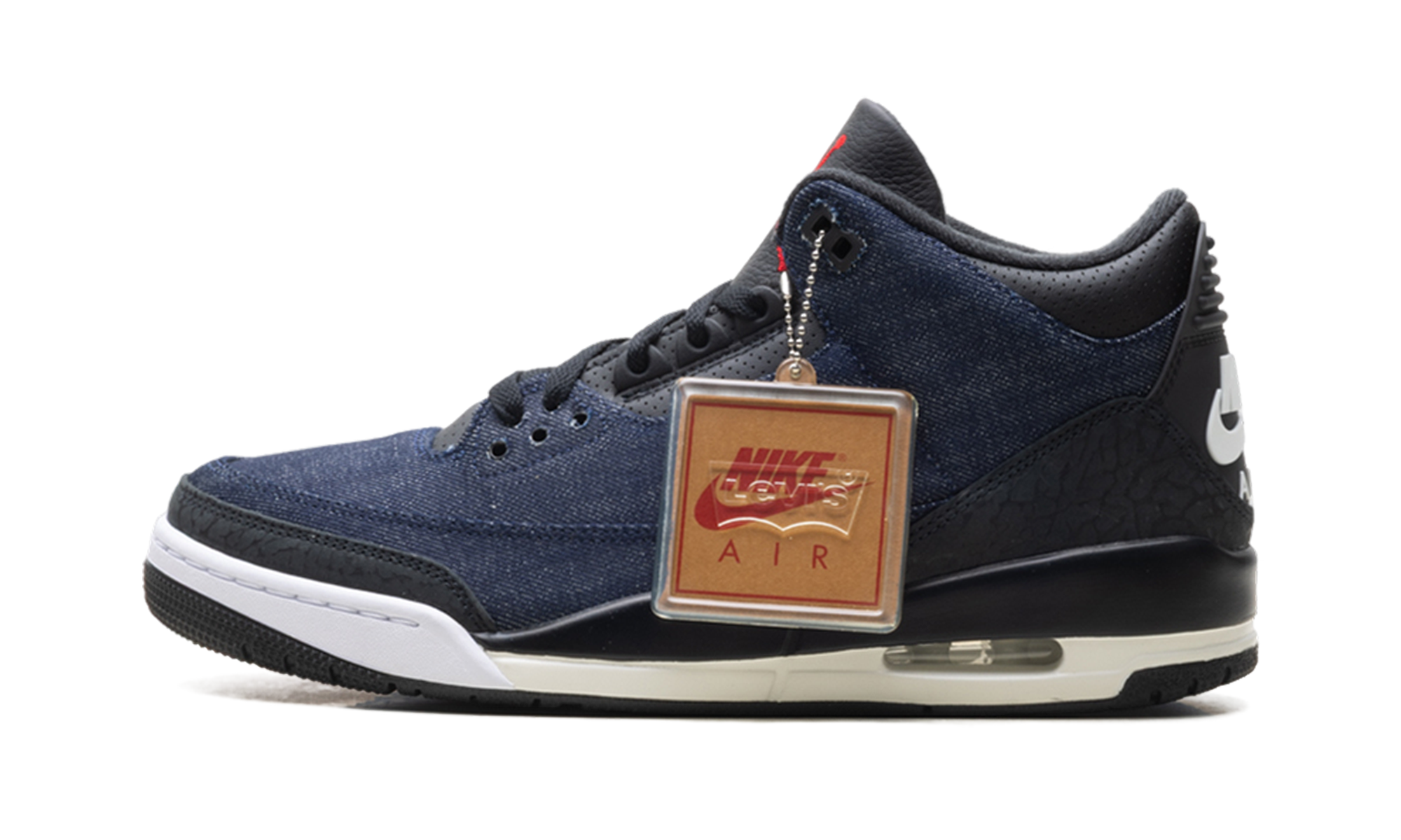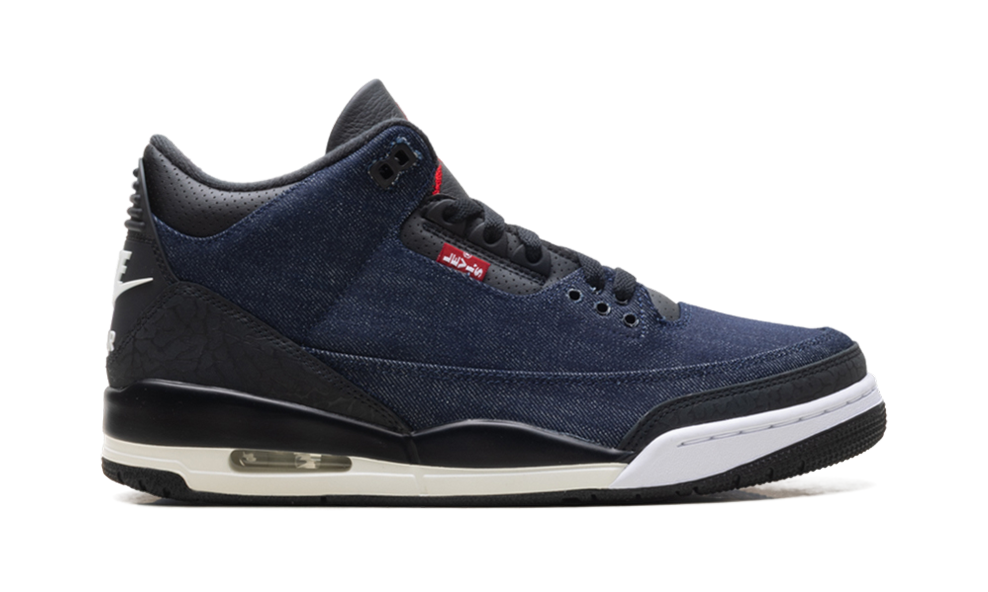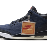 The Air Jordan 3 “Levis – Indigo” merges two American giants in a celebration of premium craftsmanship. Featuring a full-denim upper with the signature Levi’s “red tab,” this pair reimagines the classic elephant print with distressed indigo textures. The tan leather tongue patch mimics the back of a pair of 501s, adding a rugged, artisanal touch to the 1988 silhouette. It is a sophisticated, lifestyle-oriented masterpiece that bridges the gap between legendary basketball heritage and classic American denim culture.