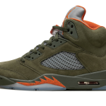 The Air Jordan 5 “Olive” is the modern re-release of the colorway of Michael Jordan’s fifth signature shoe that first released in 2006. An early lifestyle version of the Jordan 5, the “Olive” colorway was released in the mid-2000s before it was brought back for the first time in 2024. The contemporary version of the shoe is identical to the original style from ‘06. The shoe features an Olive suede construction with translucent netting on both the mid-panel and on the tongue. A Solar Orange Jumpman appears on the silver reflective tongue and on the heel. Additional orange accenting is seen on the inner lining and on the shark tooth detailing on the forefoot of the olive midsole. An icy blue translucent rubber outsole completes the look. Release date: March 9, 2024