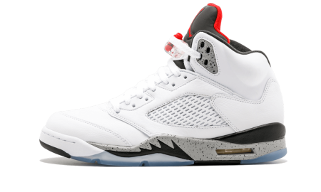 The cement motif is one of the most popular in the Air Jordan’s history, and it returns once again on a 2017 Air Jordan 5 release. This version of Michael Jordan’s fifth signature shoe features a Chicago Bulls-inspired colorway, anchored by a clean white leather upper. The cement speckling appears…