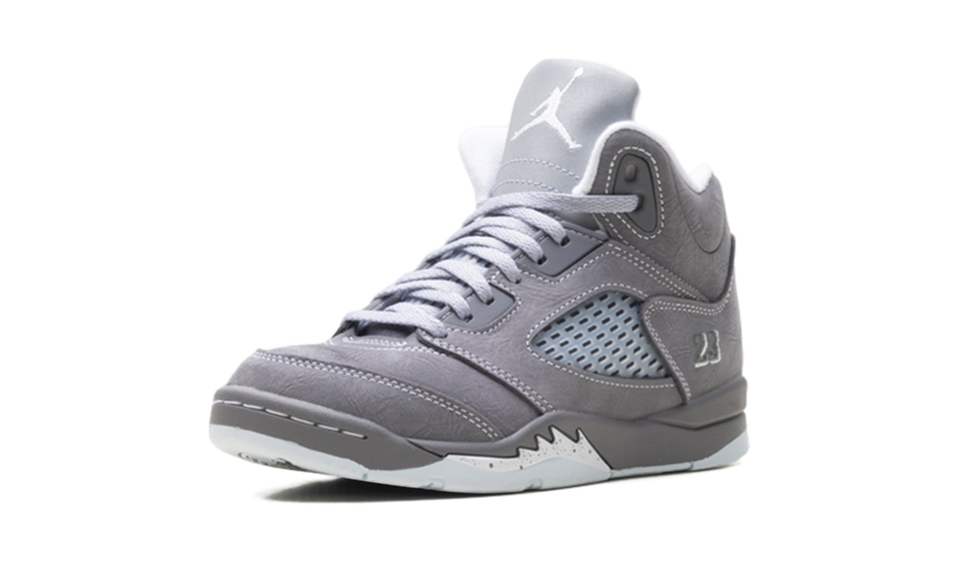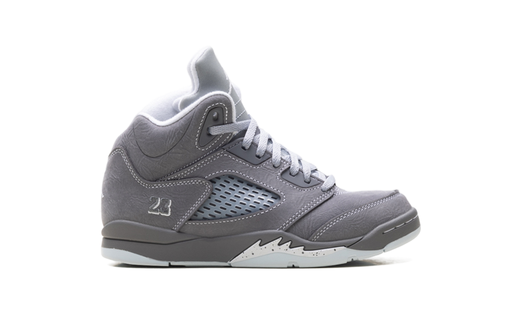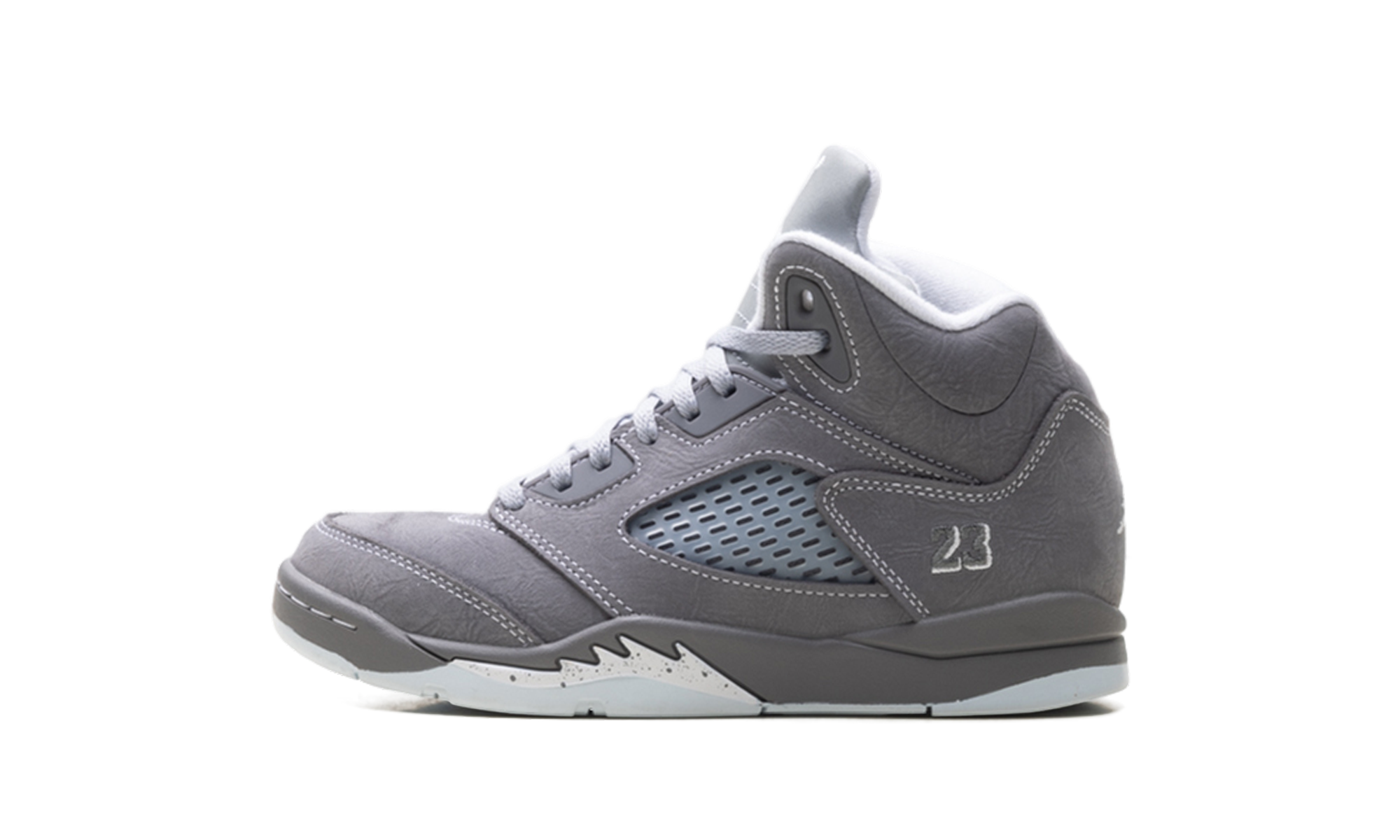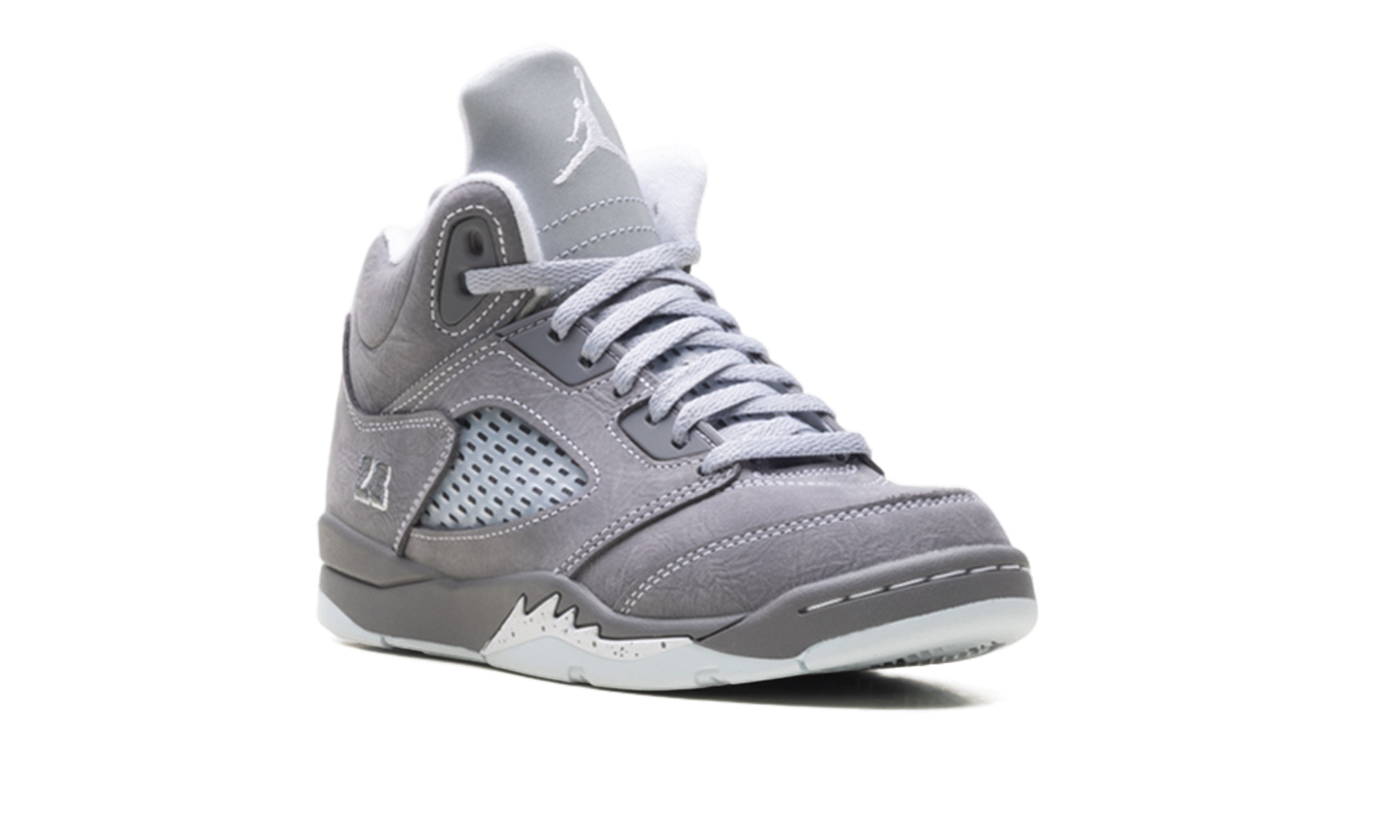 The Air Jordan 5 PS “Wolf Grey” offers a rugged yet refined aesthetic in a size tailored for pre-schoolers. Featuring the classic shark-tooth midsole and a supportive high-top design, this pair is built to stand up to daily play. The neutral grey colorway and reflective details provide a high-contrast look that pops on the playground. It is a durable, stylish masterpiece that introduces young athletes to the technical innovation and heritage style of the legendary 1990 classic.