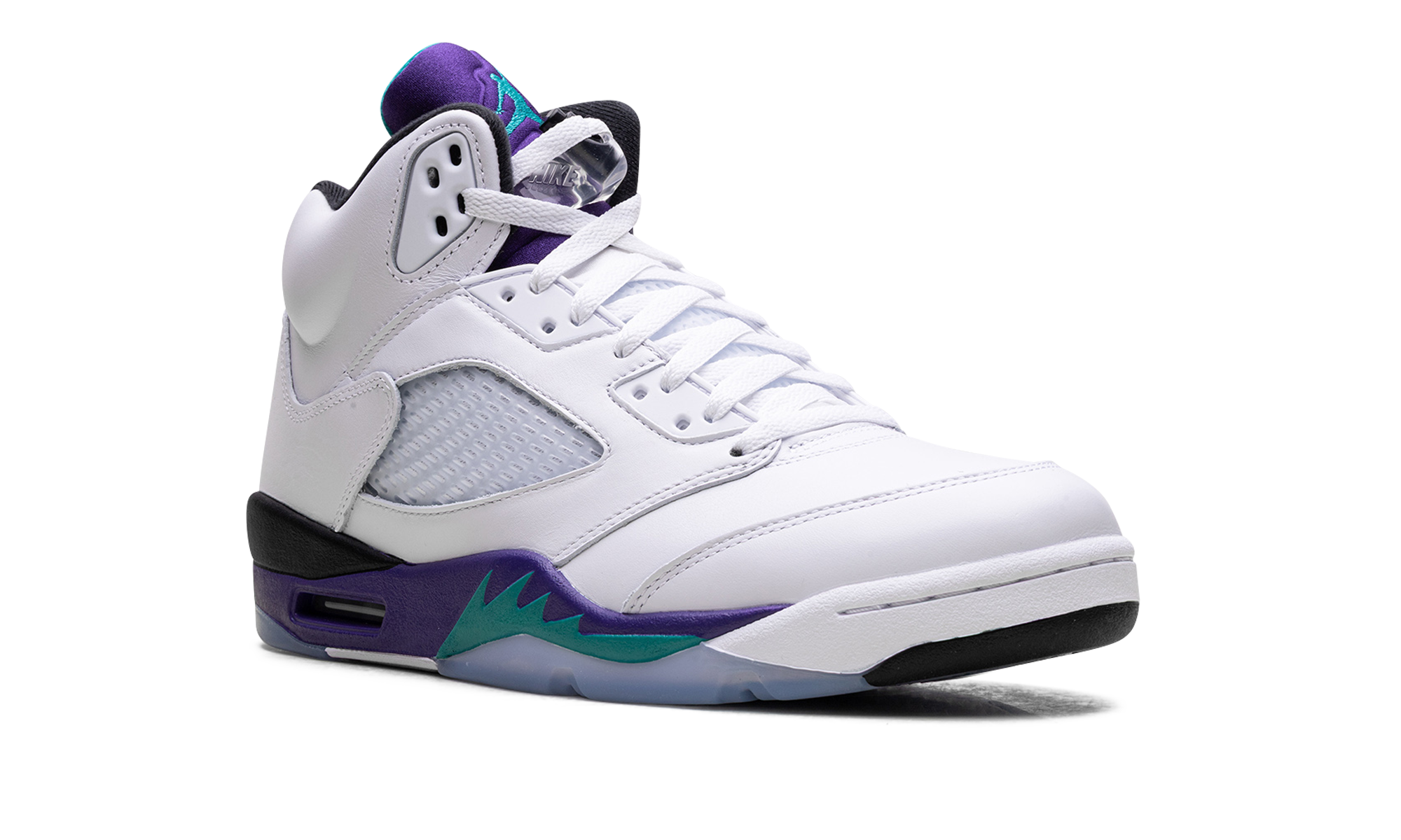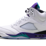The Air Jordan 5 “Grape” is one of the most popular colorways of Michael Jordan’s fifth signature shoe. Popularized by its appearance on the TV show The Fresh Prince of Bel-Air, the “Grape” AJ5 OG returned in 2025. The sneaker features a white upper that is accented with a purple tongue adorned with an aqua Jumpman logo. The Jordan 5 also has purple and aqua accents on the midsole and the Air Jordan 5’s signature toggle lace lock.