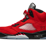 The Air Jordan 5 “Raging Bull 2021” is the first-ever standalone release of one of the most popular non-original Air Jordan colorways. The “Raging Bull” or “Toro,” as it’s also referred to by sneaker collectors, was originally released in 2009 as part of a limited edition “Defining Moments Pack” that dressed Michael Jordan’s fifth signature shoe in two styles: An all-red suede look and a reflective black design. Packaged inside of a shoe box mimicking a wooden crate, the “Defining Moments” Air Jordan 5 bundle remains extremely desirable to this day. As for the design of the modern re-release, Jordan Brand dresses the upper in a fiery shade of supple Varsity Red suede. Clear netting can be found on the mid-panel and tongue. The model’s silver reflective tongue is inspired by the look of the original Air Jordan 5 “Fire Red – Silver Tongue.” Like the OG “Raging Bull,” the modern incarnation displays a black embroidered Jumpman on the tongue, a tonal “23” logo with black outlining on the lateral side, and a black Jumpman on the heel. The clear lace lock and red laces are a nod to the first “Raging Bull.” Underfoot, the black painted midsole features red-and-white shark tooth detailing and a clear Air unit in the heel retains the Jordan 5’s original design. Release date: April 10, 2021.
