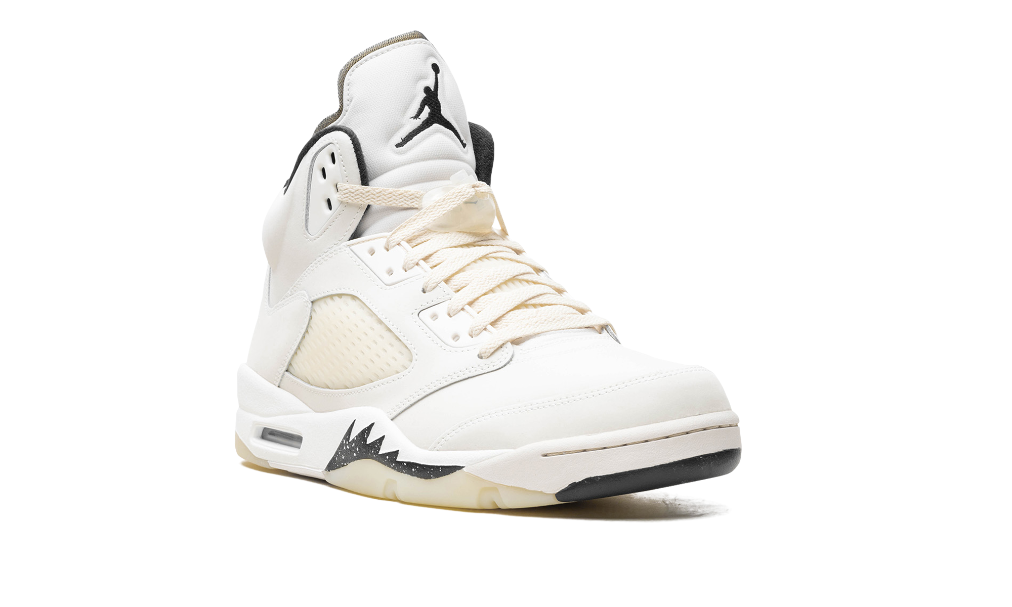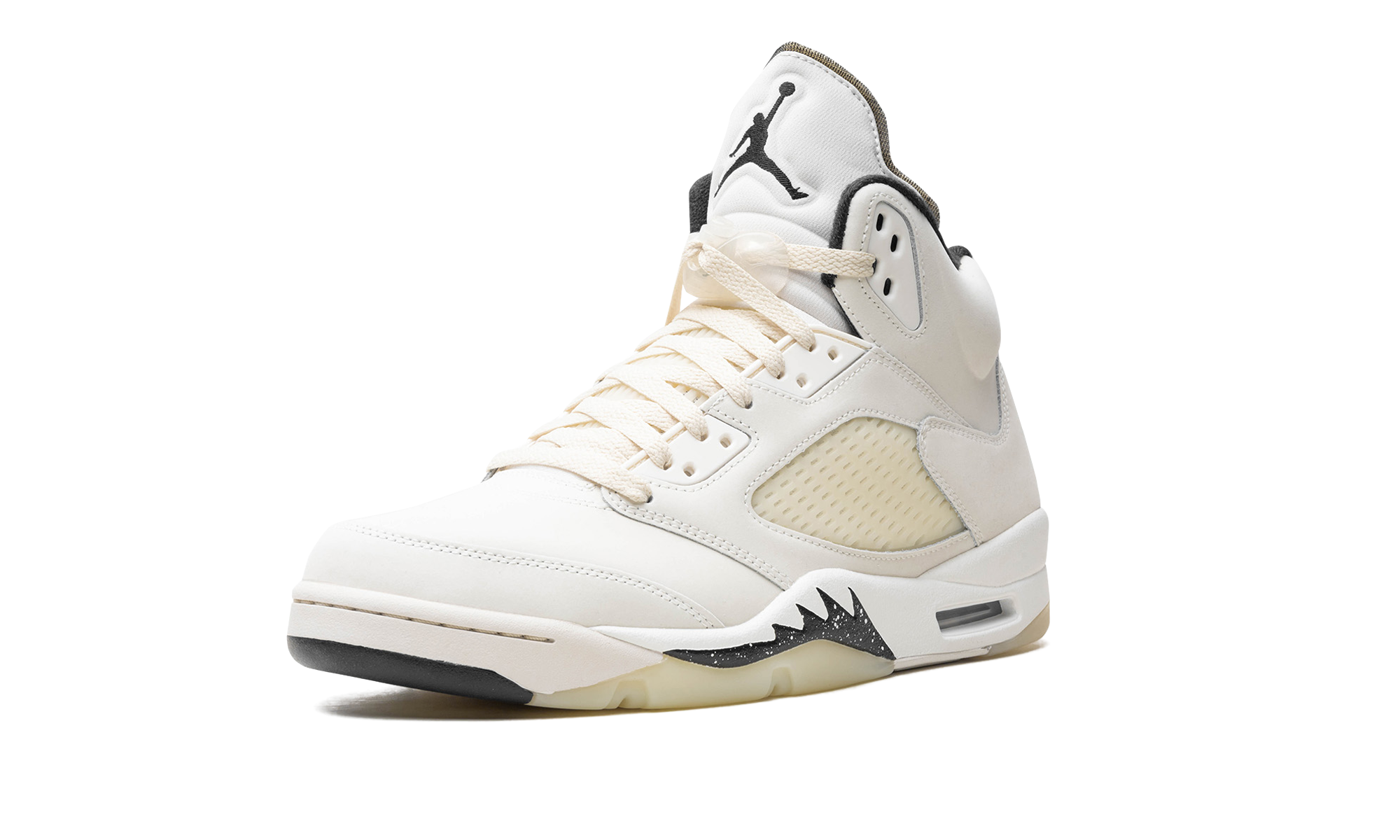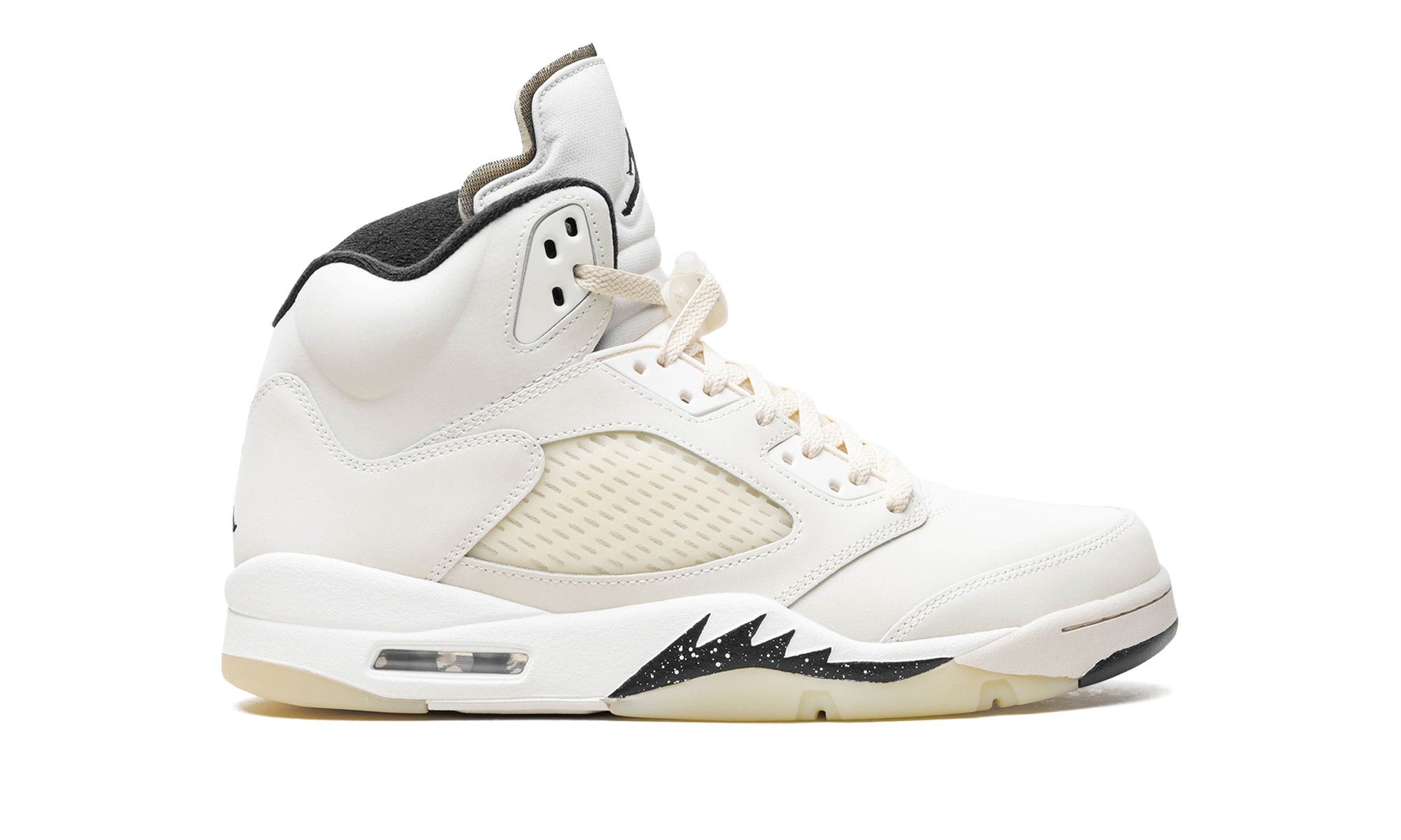 The Air Jordan 5 SE “Sail” is a neutral-based colorway of Michael Jordan’s iconic fifth signature shoe. True to its nickname, the Jordan 5 “Sail” features a Sail leather upper with Coconut Milk-colored netting on the tongue and mid-panel. A black Jumpman appears on the tongue and on the heel. Moreover, additional black detailing can be found on the speckled shark tooth design on the forefoot of the midsole. Underfoot, a Coconut Milk rubber outsole gives the shoe a classic, slightly aged aesthetic that ties into the Jordan 5’s old school vibe. Release date: April 13, 2024