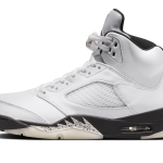 The Air Jordan 5 “White/Black” is a monochrome iteration of the classic Air Jordan silhouette that originally came out in 1990. The iconic design elements of the Jordan 5 such as the metallic tongue, lace toggle, translucent outsole, and fighter plane-inspired elements on the midsole, look incredibly sleek and clean in this “White/Black” colorway.