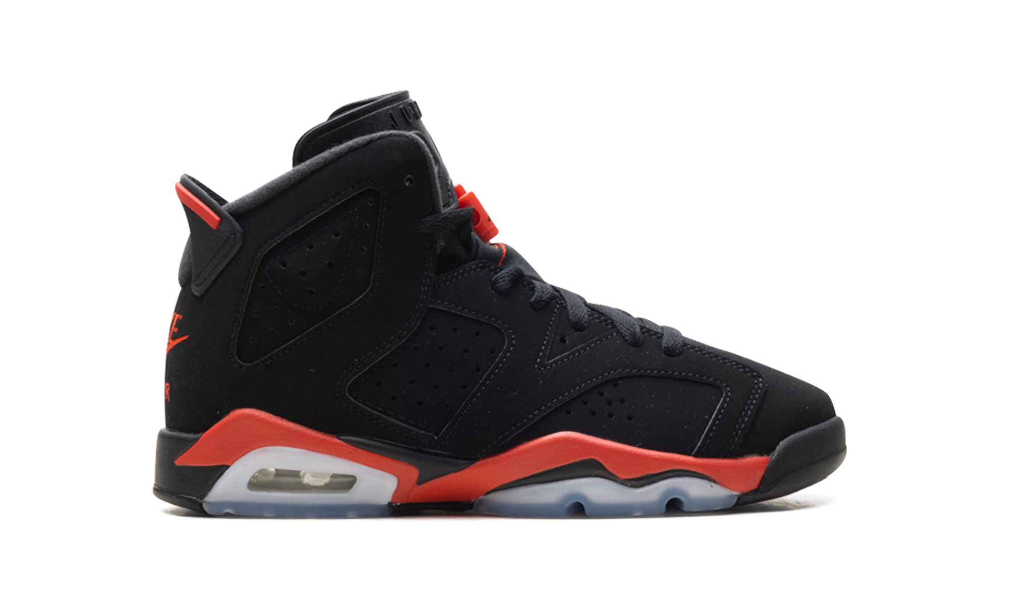 The Air Jordan 6 GS “Reverse Infrared” flips a legendary colorway for a bold, high-contrast aesthetic. This Grade School edition features a vibrant Infrared upper that demands attention, contrasted by sharp black accents on the tongue, pull tab, and midsole. The signature toggle lacing system and visible Air-sole unit provide the classic performance feel that MJ made famous in ’91. Built for the next generation of sneakerheads, these kicks deliver a fiery, energetic look to any rotation.