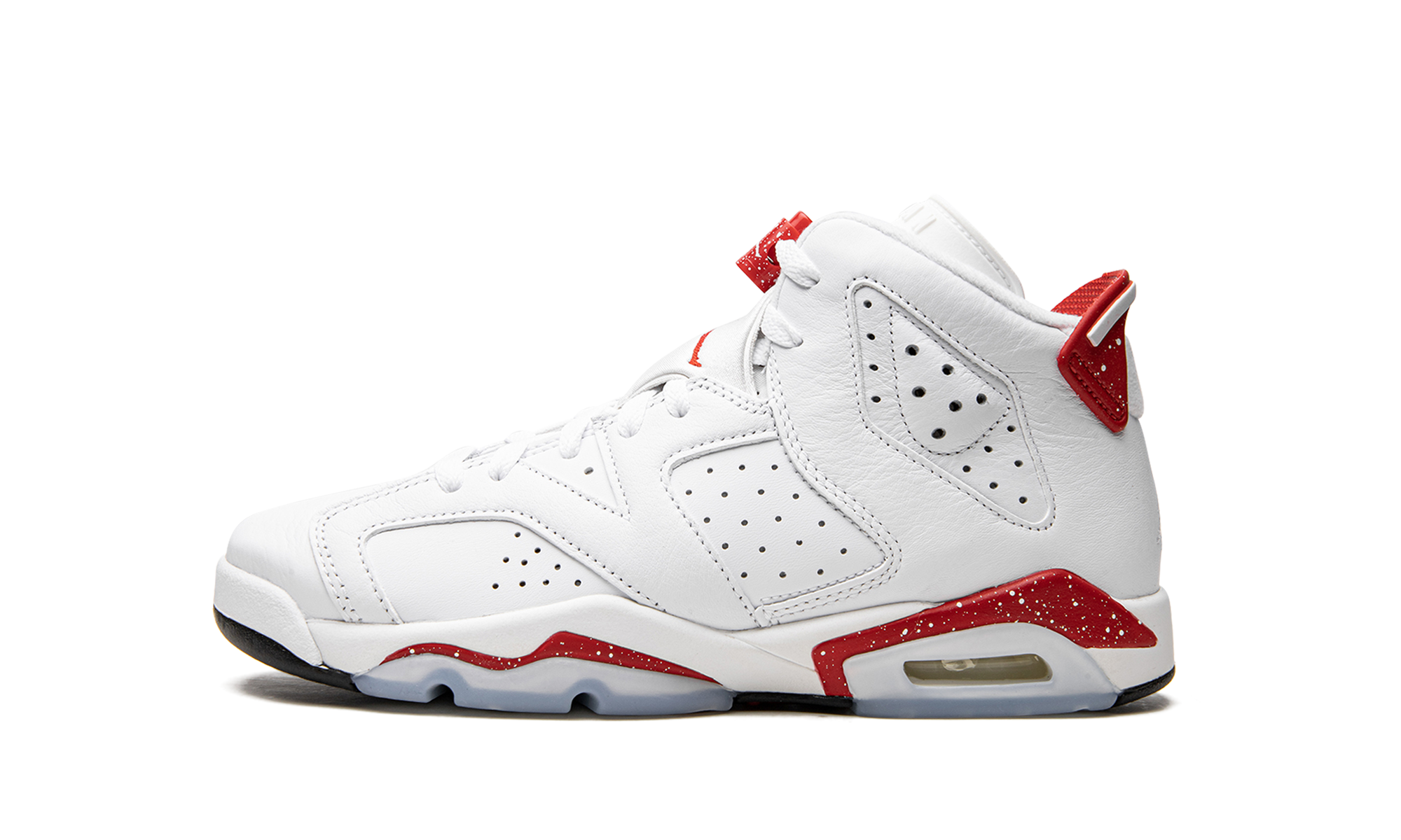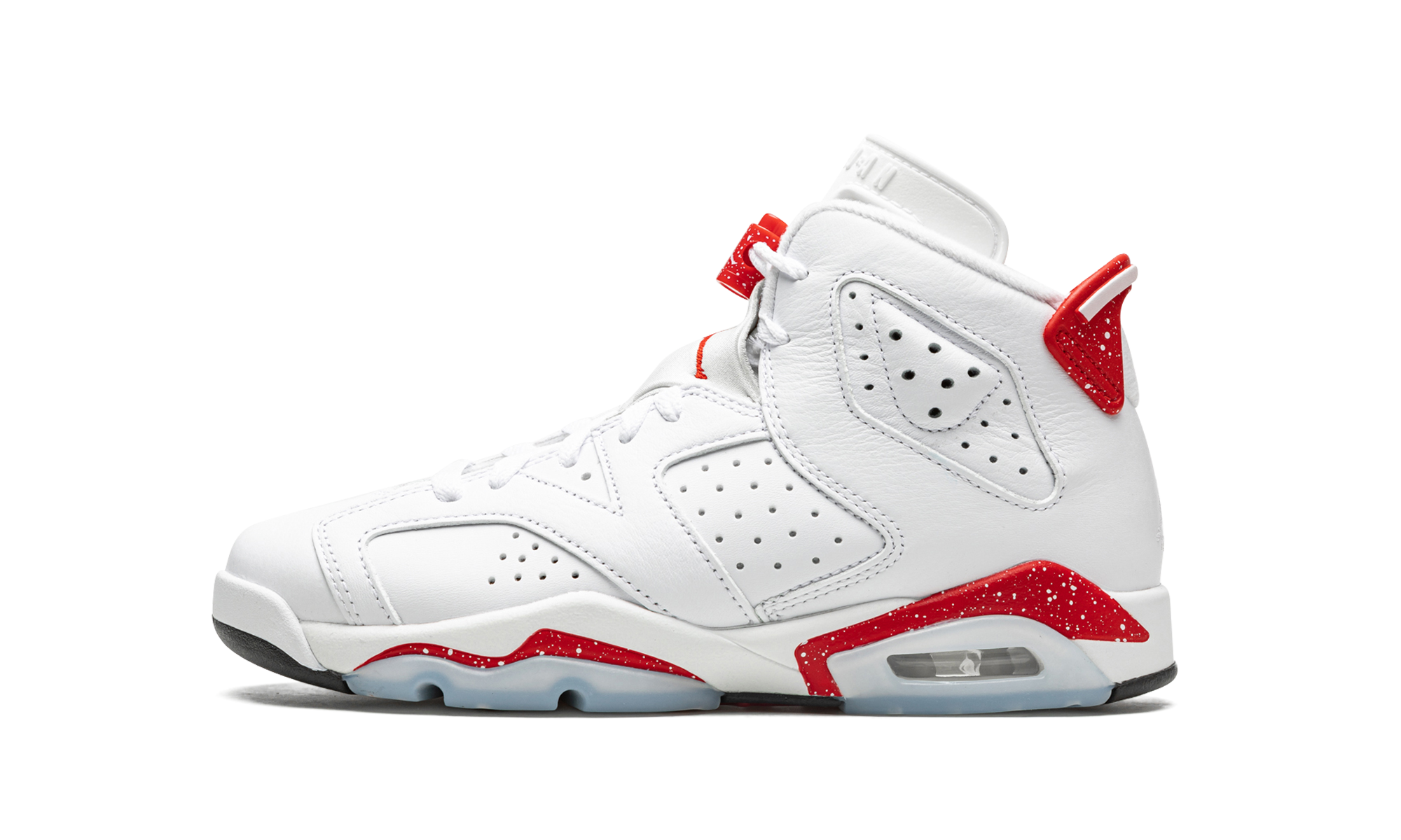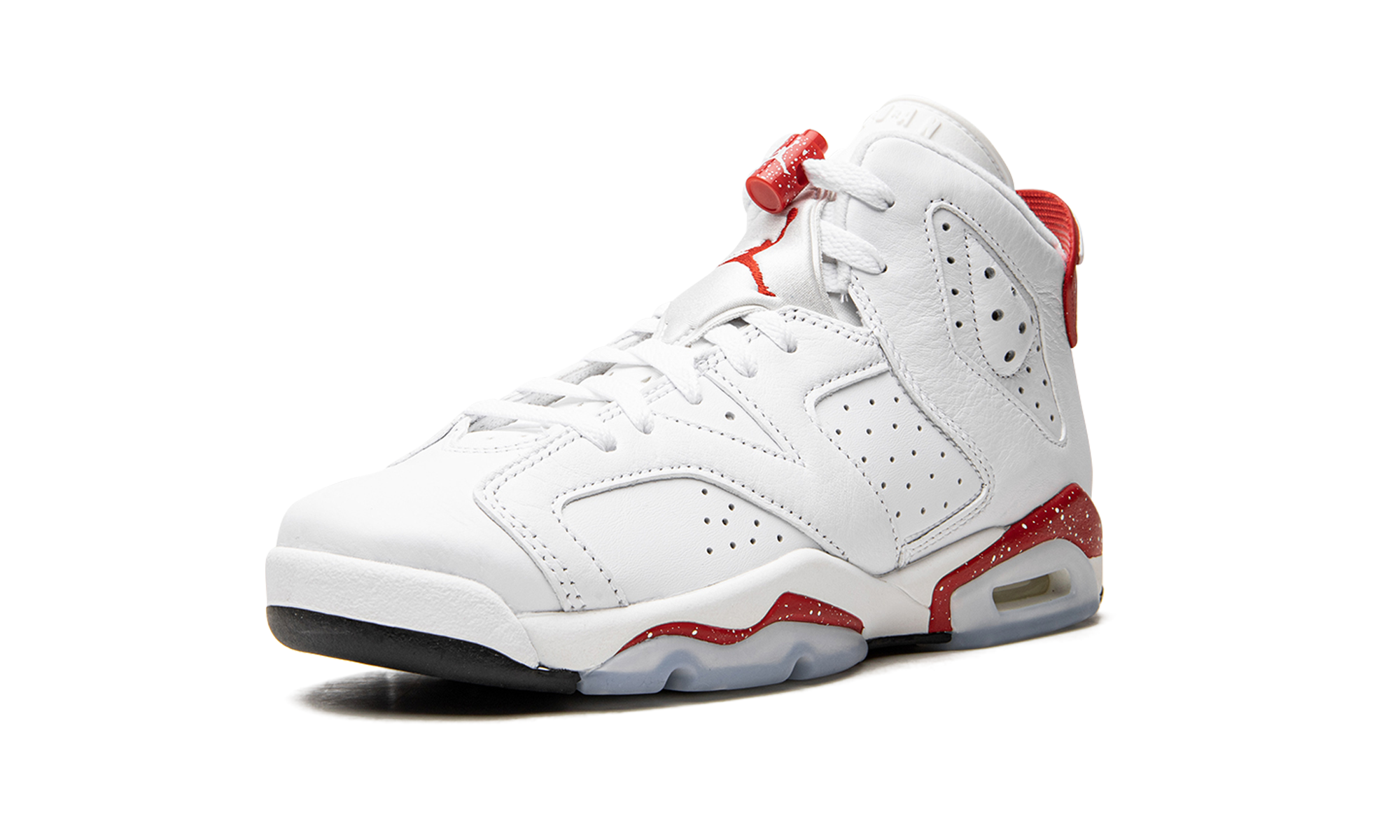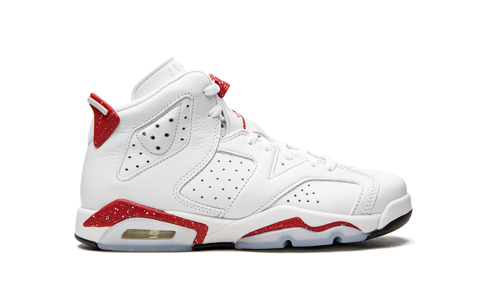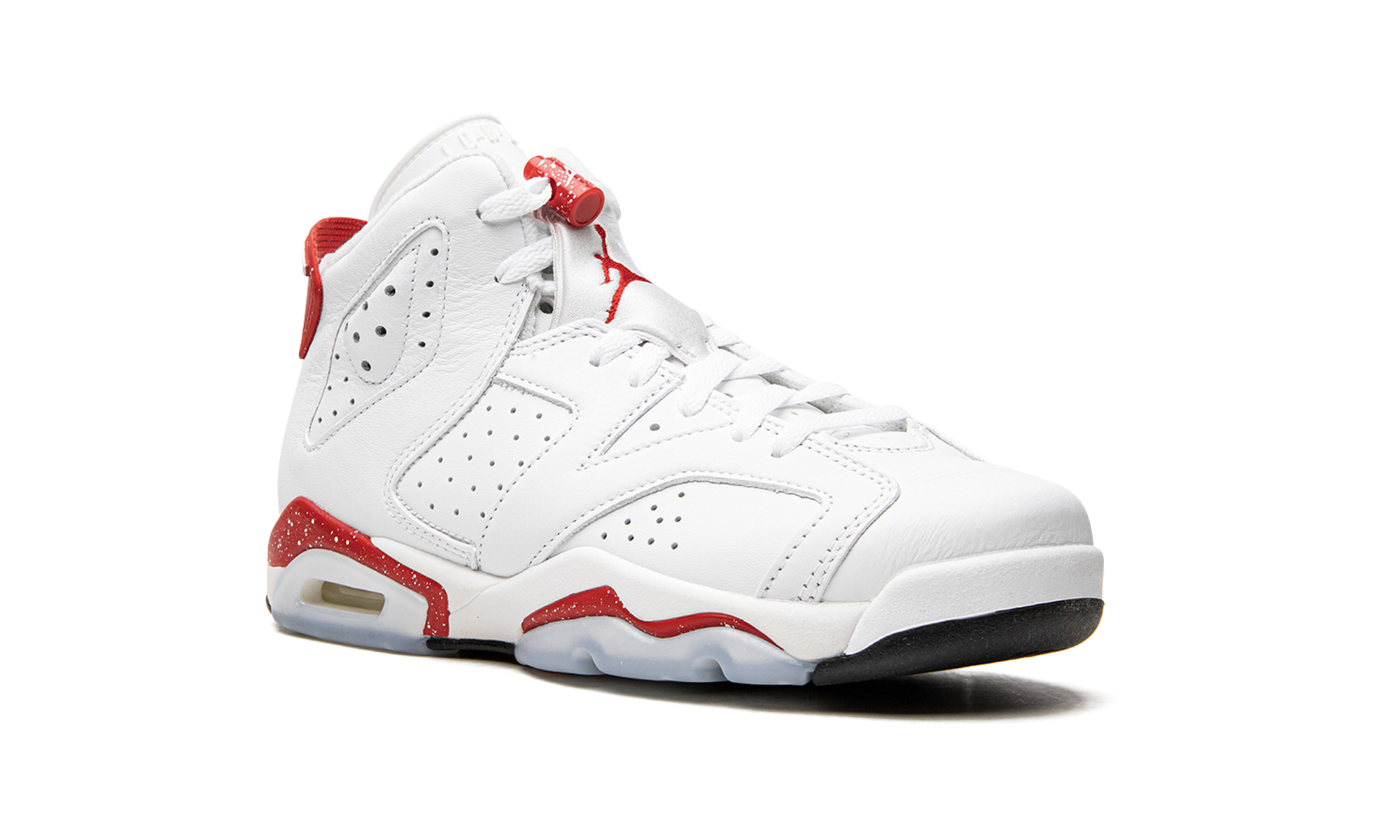 The Air Jordan 6 GS “Red Oreo” is the youth sizing of the colorway of the vintage basketball shoe that unofficially nods to the popular snack of the same nickname. Jordan Brand’s “Oreo” color story continues on the Jordan 6 “Red Oreo.” The “Red Oreo,” specifically, seemingly shows love to the Red Velvet Oreo flavor, sans any official Oreo branding or likeness. The upper features a white leather construction that gives way to contrasting University Red accents. The fiery shade of red is found on the midsole and spoiler, both with white speckle detailing, and on the embroidered Jumpman on the lace shroud and lace toggle. A tonal Jumpman logo is stitched onto the heel. Release date: June 4, 2022
