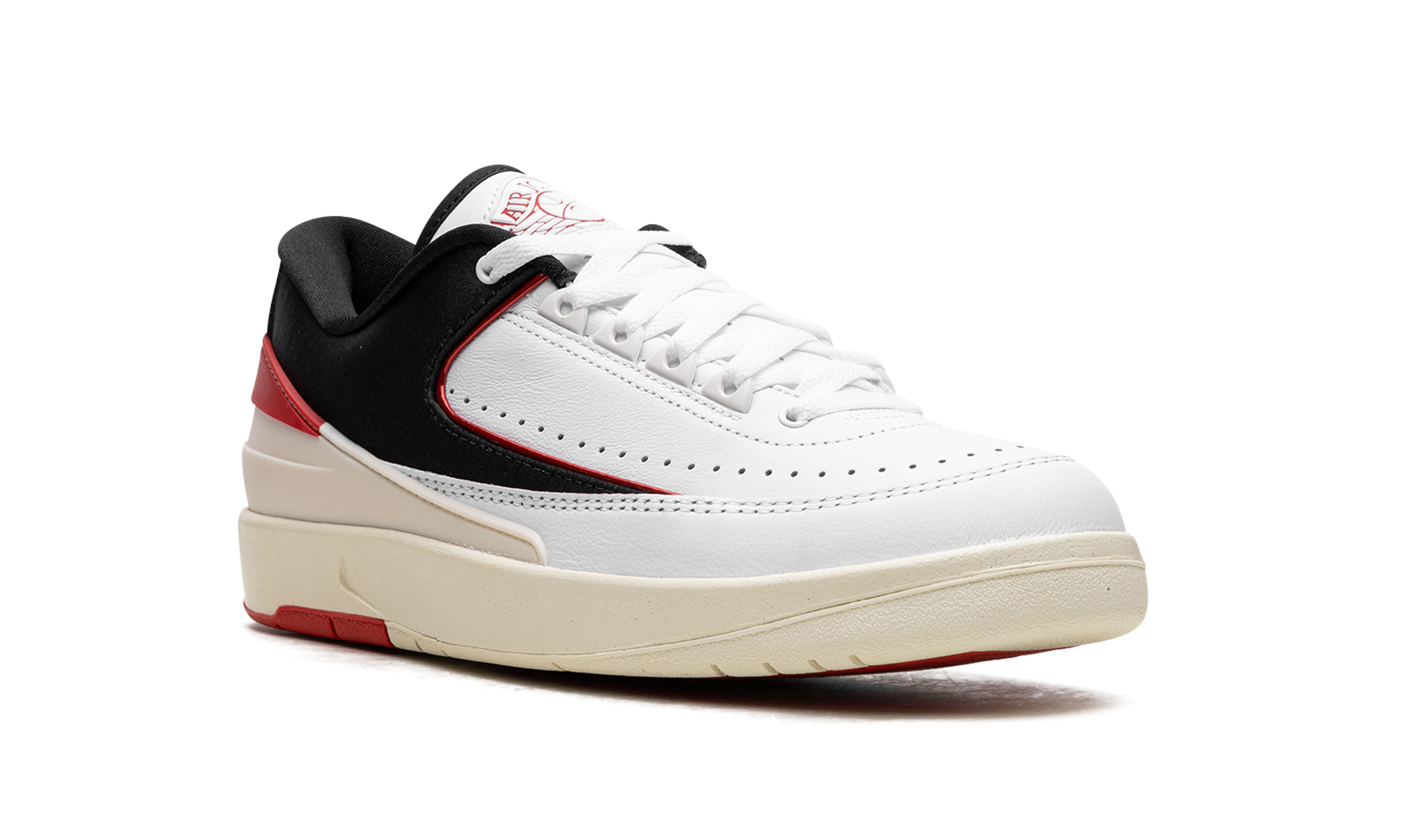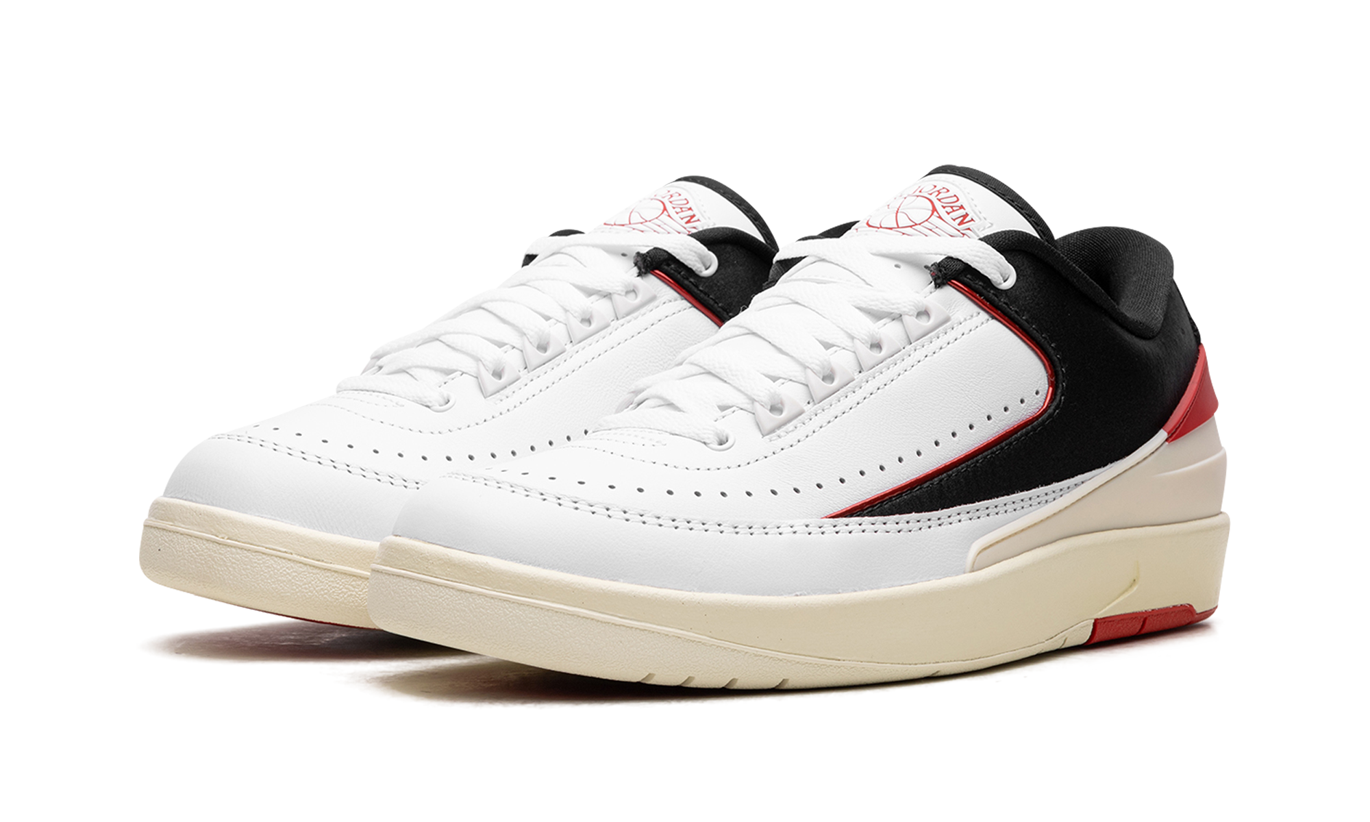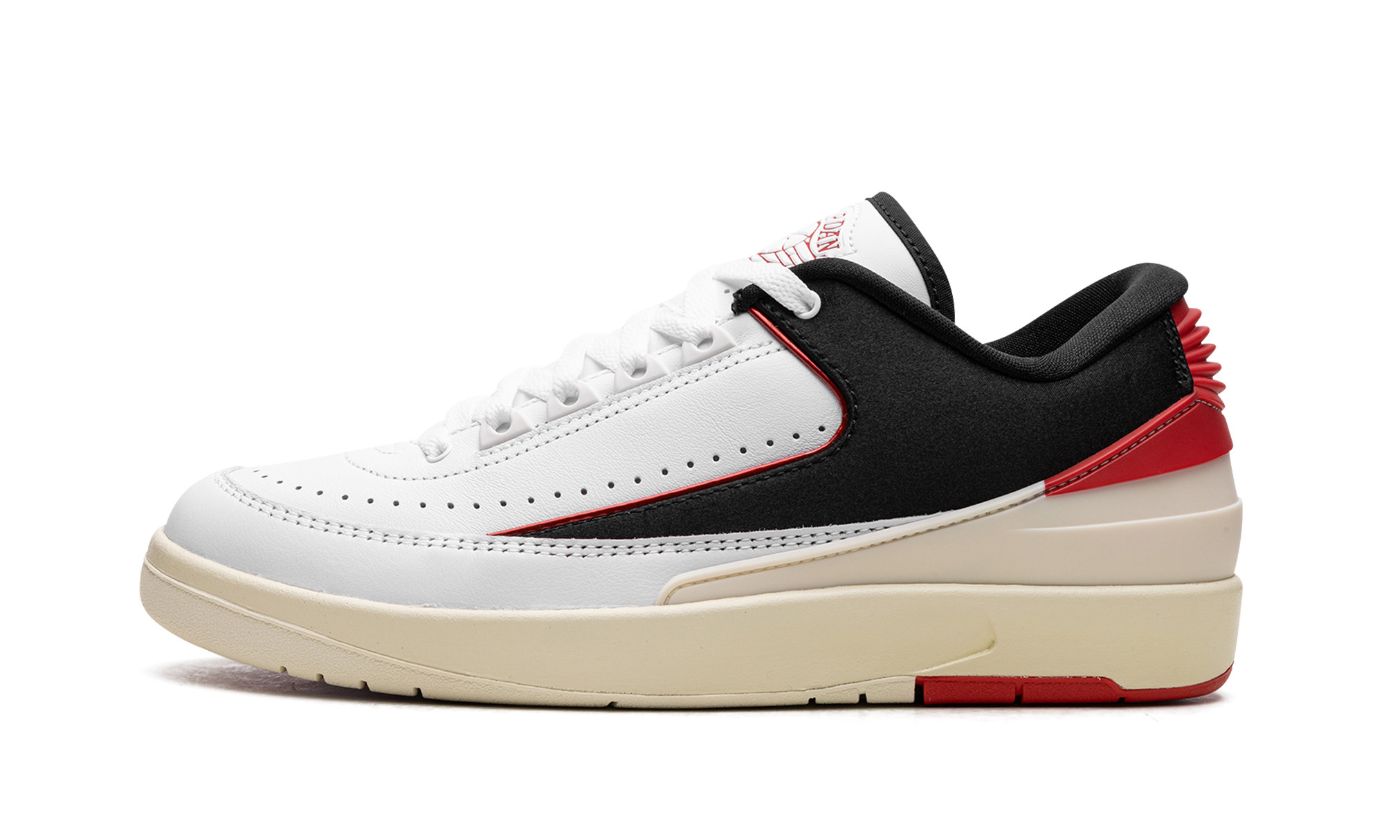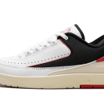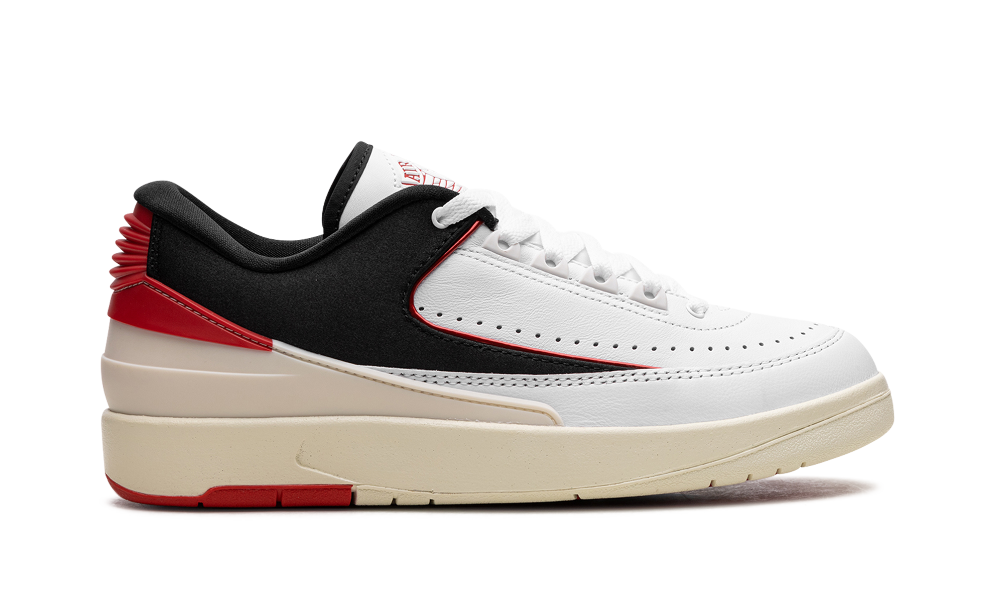 The Women’s Air Jordan 2 Low “Chicago Twist” is a women’s-exclusive colorway of Michael Jordan’s second signature shoe that reimagines the model’s original “Chicago” style. Worn by Jordan with the Chicago Bulls, the Jordan 2 “Chicago” is one of the retro basketball sneaker’s most prized colorways and, here, Jordan Brand modifies its design to include more black accenting than what was found on the original version of the colorway. The shoe has a white leather construction with black-and-red accenting inspired by the Bulls’ uniform colors. More specifically, a black satin overlay with red contrast piping is seen on the collar and heel while a red heel counter is found on the back of the shoe. A classic “Wings” logo appears on the tongue. A Coconut Milk-colored midsole gives the shoe a vintage look. Release date: October 7, 2023